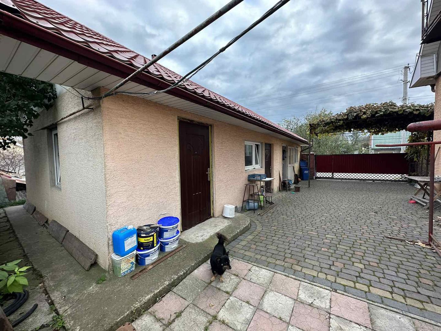 Будинок має просторий двір, викладений тротуарною плиткою, є місце для паркування двох автомобілів, територія огороджена.