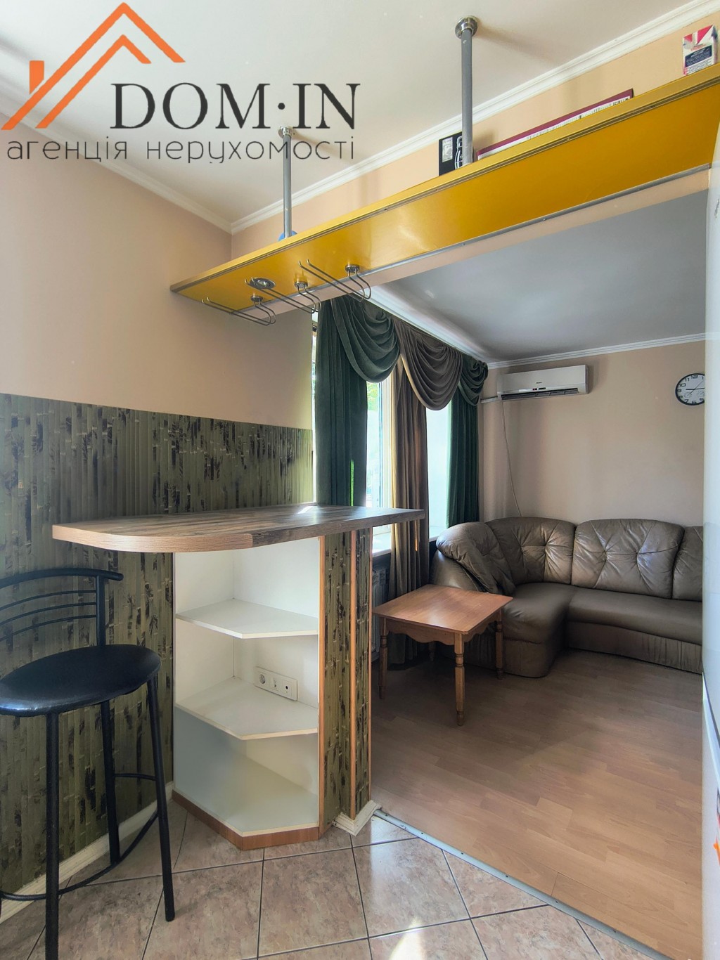 -Кімната зонована тимчасовою перегородкою( легко прибрати)