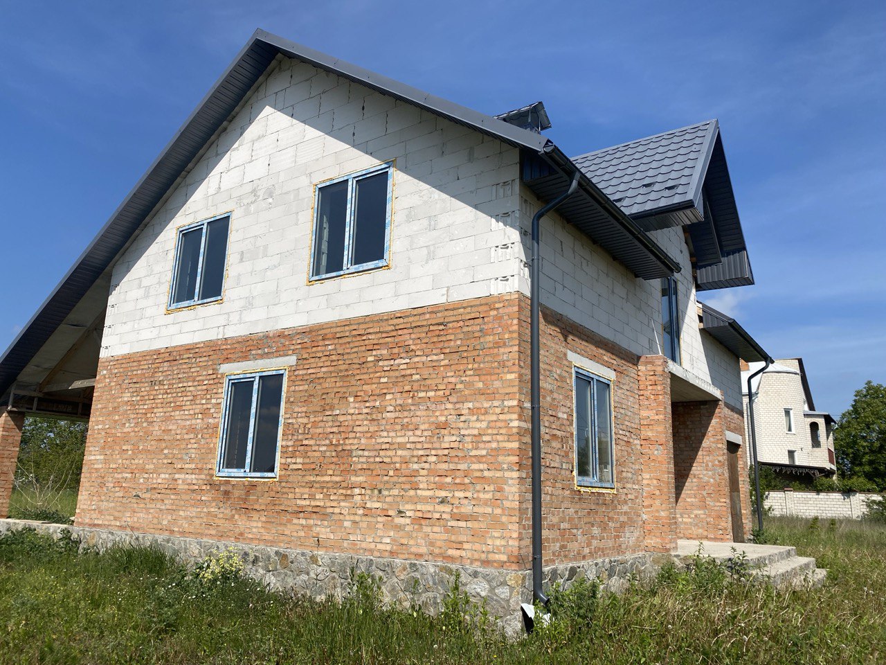 Будинок знаходиться на ділянці 12 соток, що дозволяє облаштувати сад, зону для відпочинку або дитячий майданчик. Всі необхідні комунікації вже підключені: електропостачання потужністю 16 кВт, є проектна документація та колодязь.