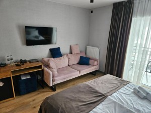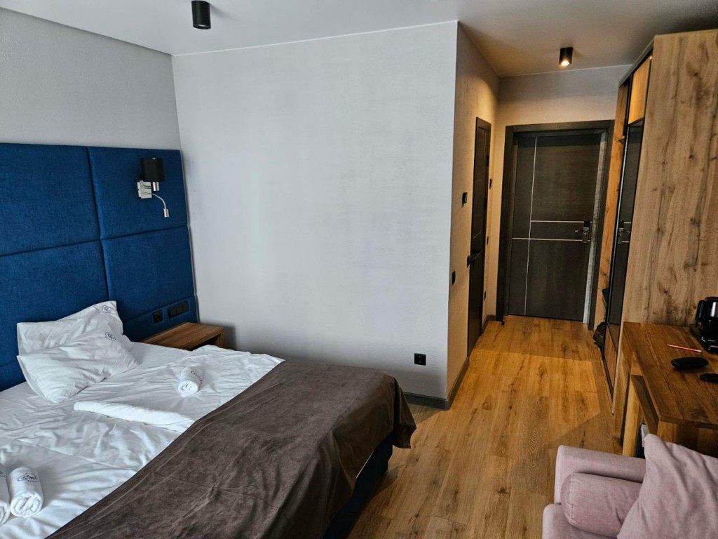 - Продумане планування – затишна кімната з двоспальним ліжком та диваном , робоча зона