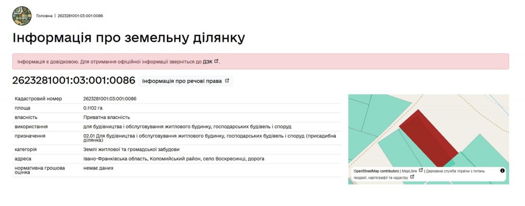Площа ділянки: 11.02 сот