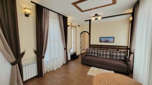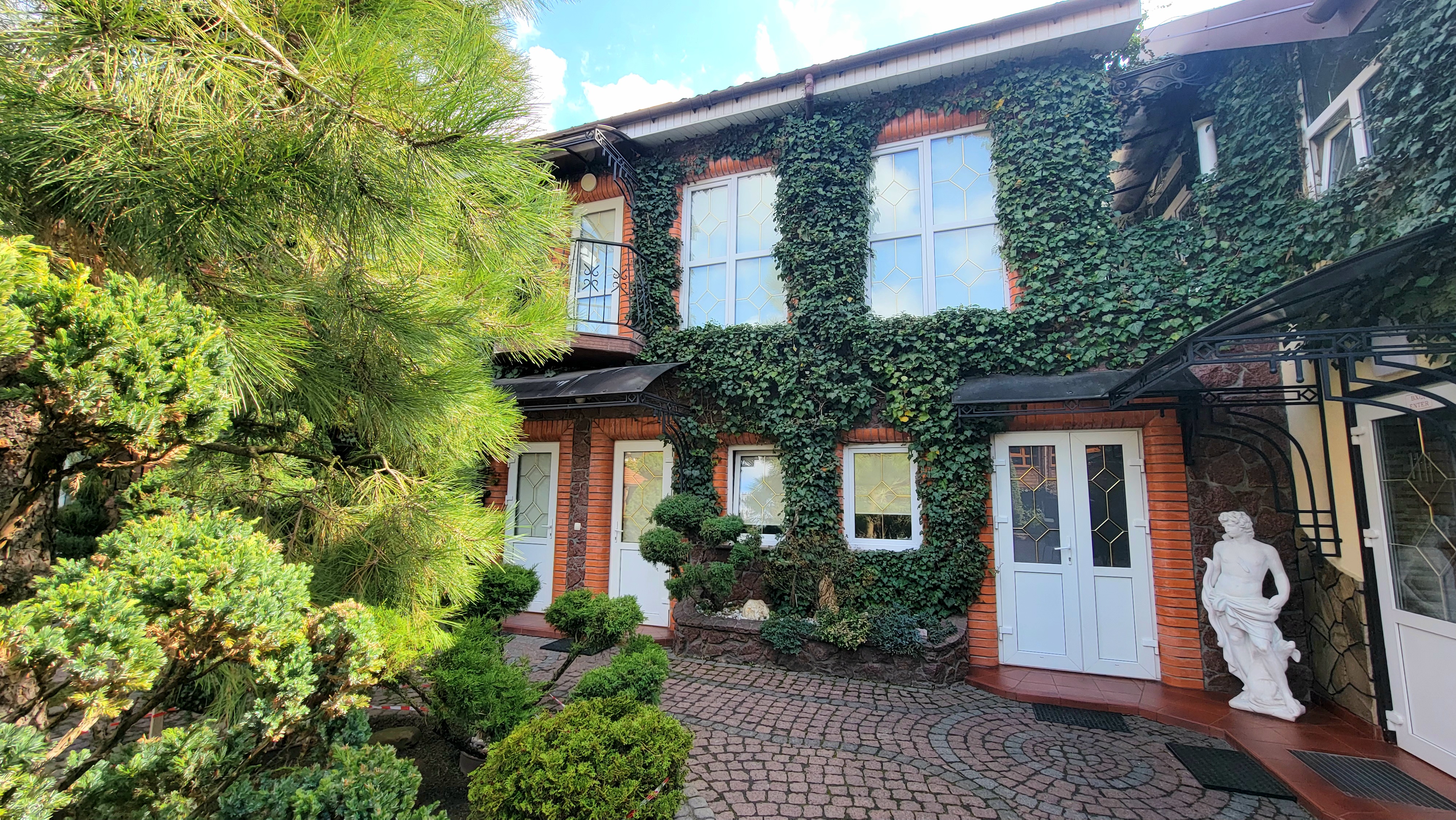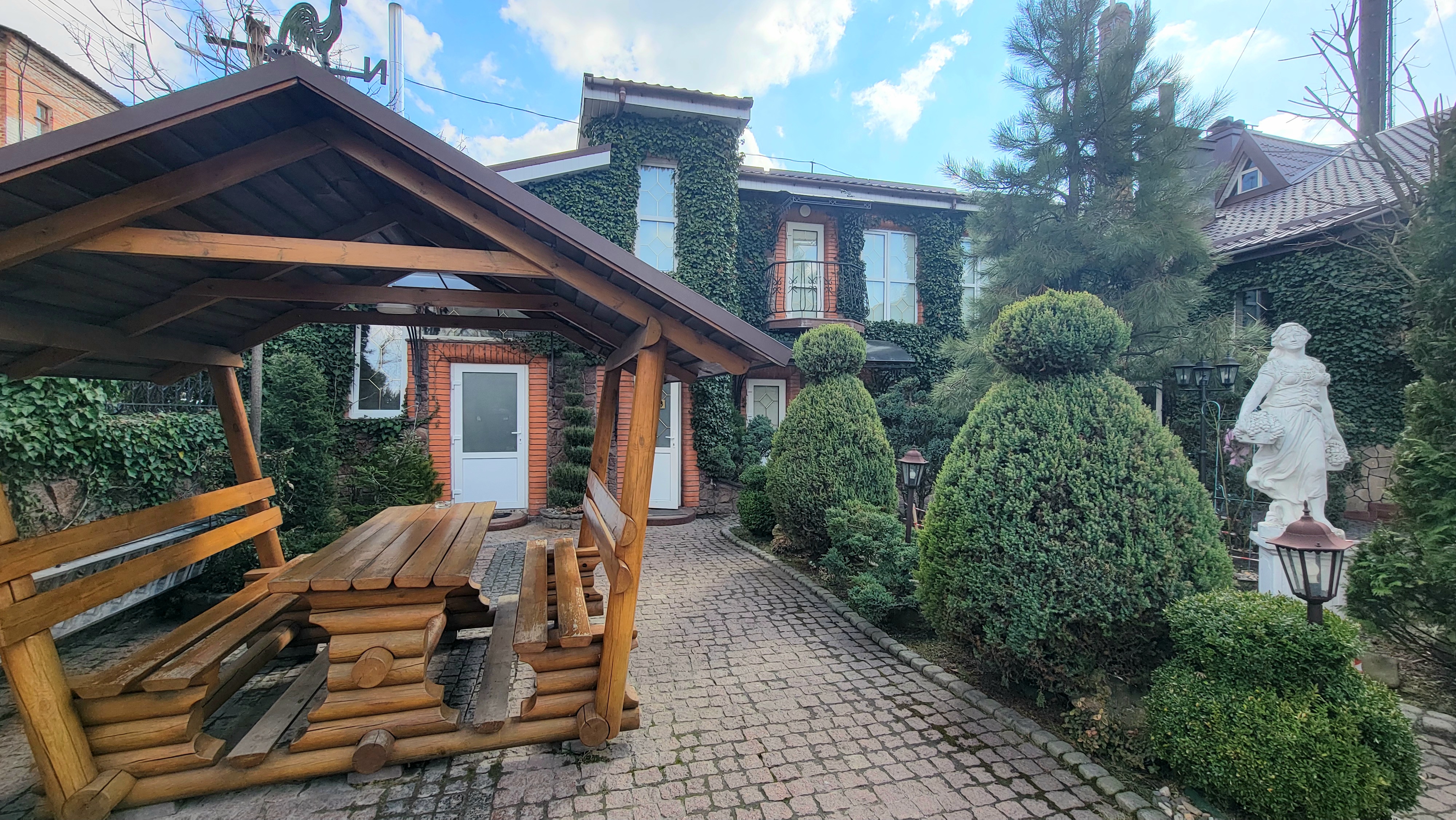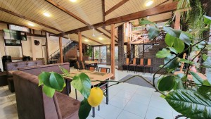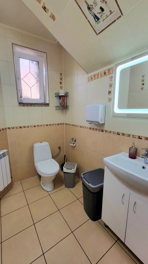 Комплекс опалюється двома котлами: газовий та твердопаливний, світло 380 Вт, теплі підлоги, є скважина, криниця, центральна вода та каналізація. Також є парковка для автомобілей. Двір виложений гранітною бруківкою, огорожа з каменю. Сама будівля з цегли та газоблоків, перекриття ж/б. Є система відеоспостереження. При необхідності залишається обладнання, меблі та техніка. Всі подробиці за телефоном в рекламі.