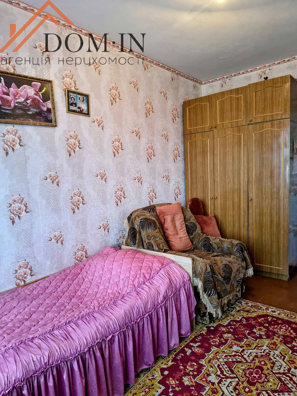 -Кімната зонована тимчасовою перегородкою( легко прибрати)