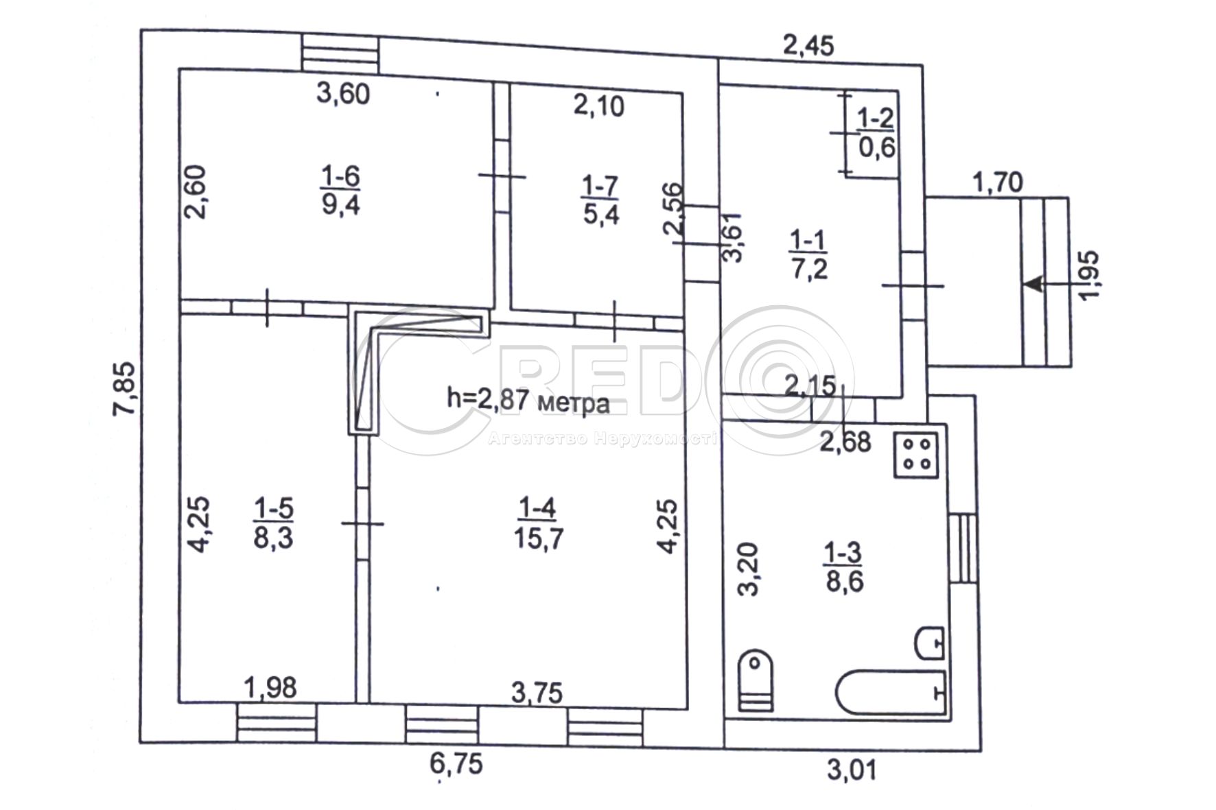 - у будинку три кімнати та передпокій