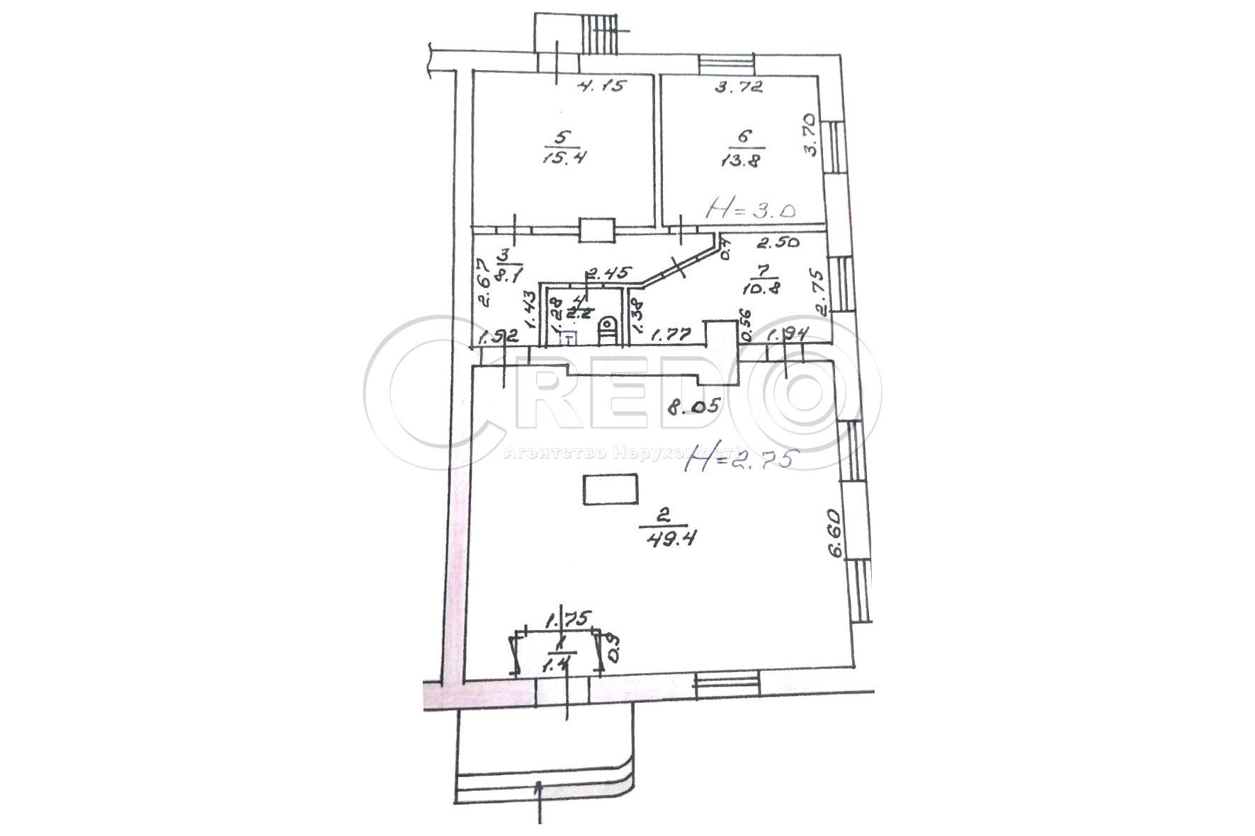 - Висота стелі Н- 2.75м.