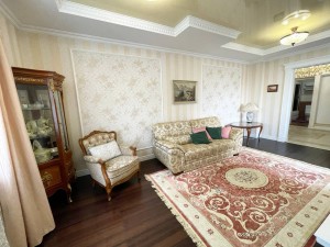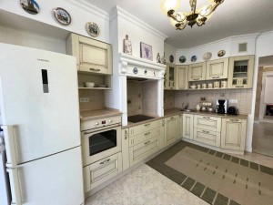 Ремонт виконаний в класичному стилі із дороговартісних матеріалів, який ідеально доповнюють вишукані меблі та декор. Всі вбудовані меблі та техніка залишаються. Зокрема, присутня посудомийна машина, варильна поверхня, духовка, фільтри для води, кондиціонер тощо. На опалення – 2-контурний газовий котел, а також тепла підлога в холі, яка надзвичайно довго зберігає тепло. Розміщена на 9 (не останній) поверсі із неймовірним краєвидом!
