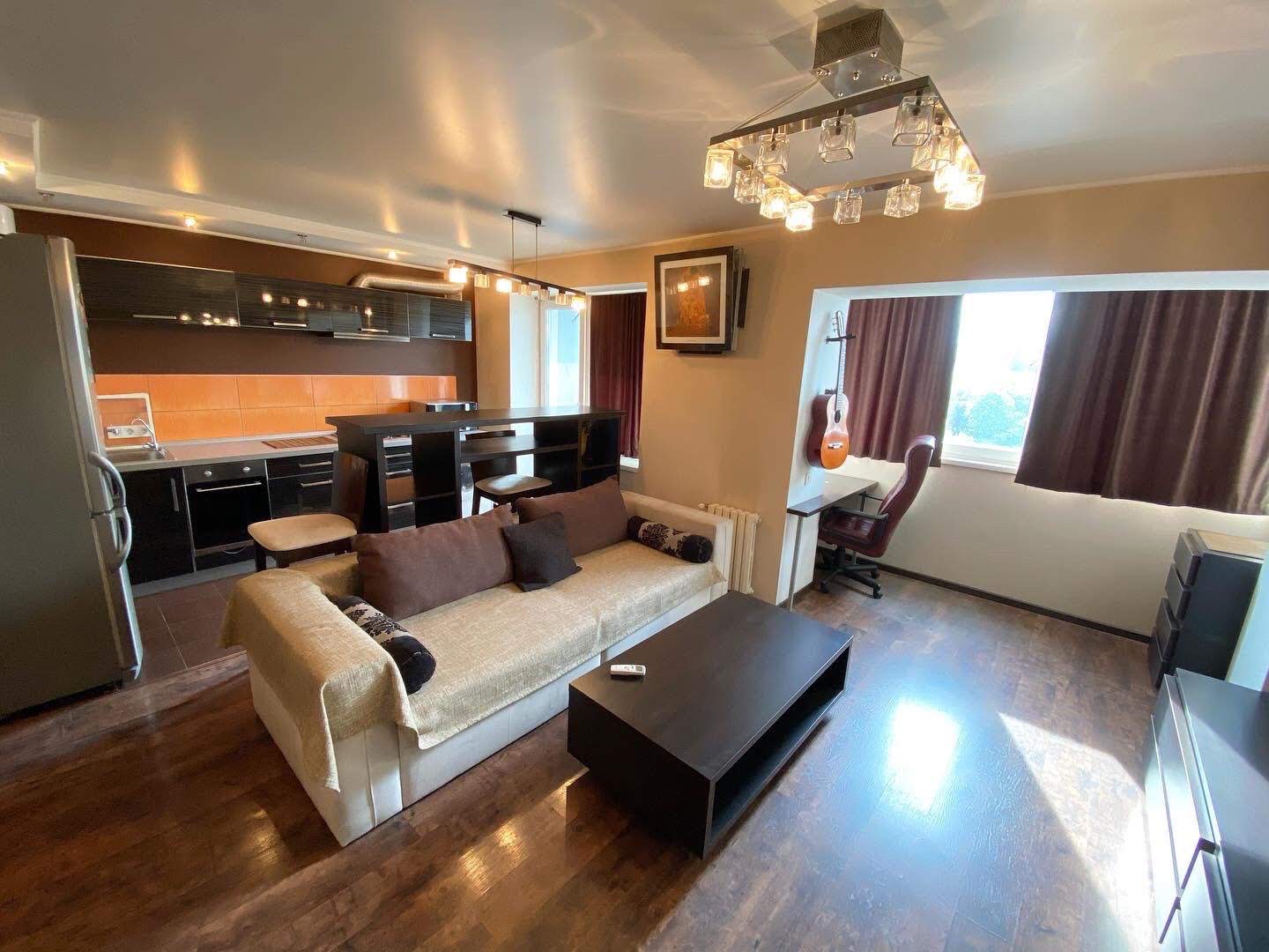 квартира знаходится в 9 поверховому будинку з білої цегли,ліфт завжди працює,зроблено сучасний ремонт,дорогі меблі та техніка, квартирі багато світла та повітря!