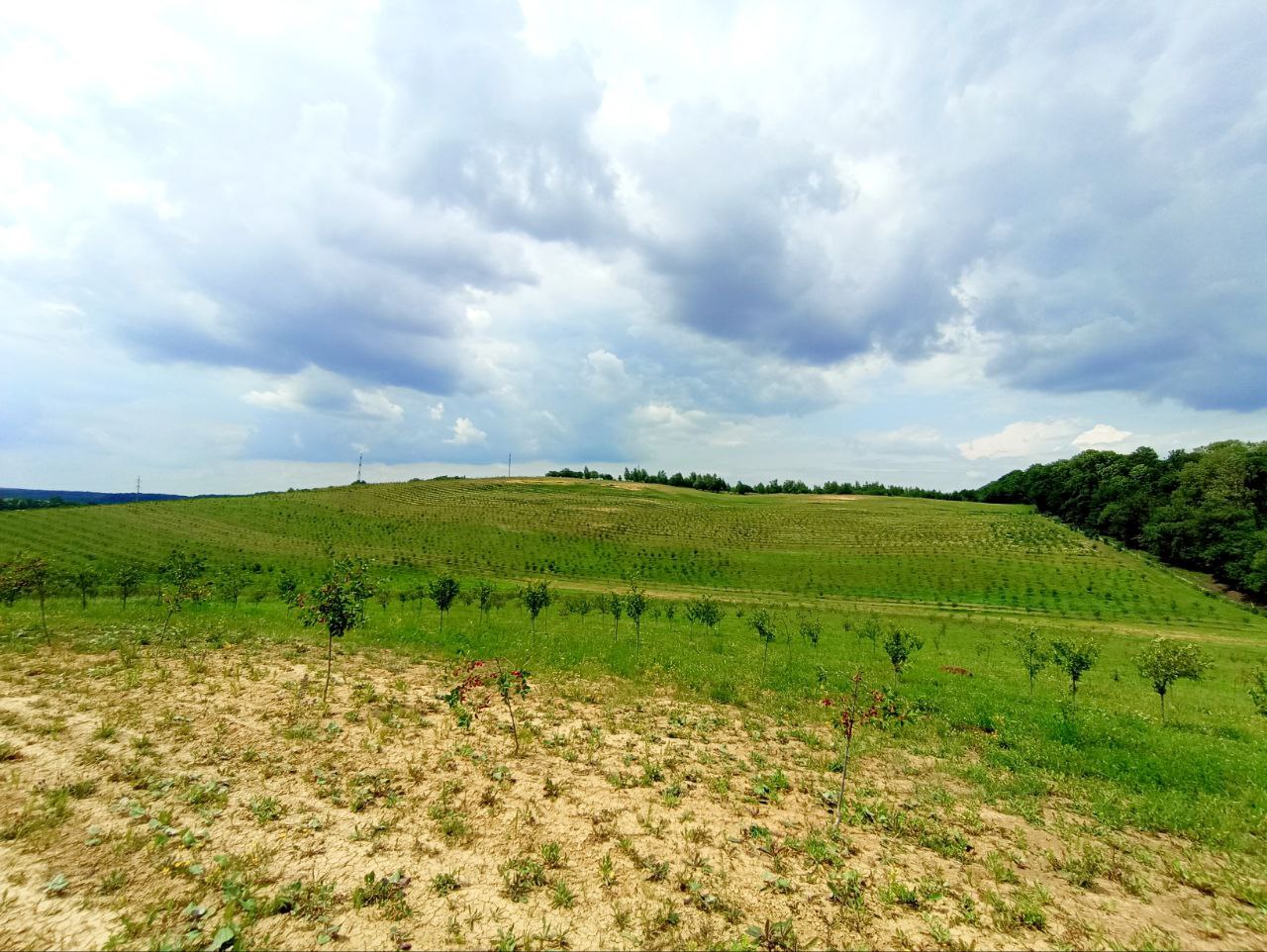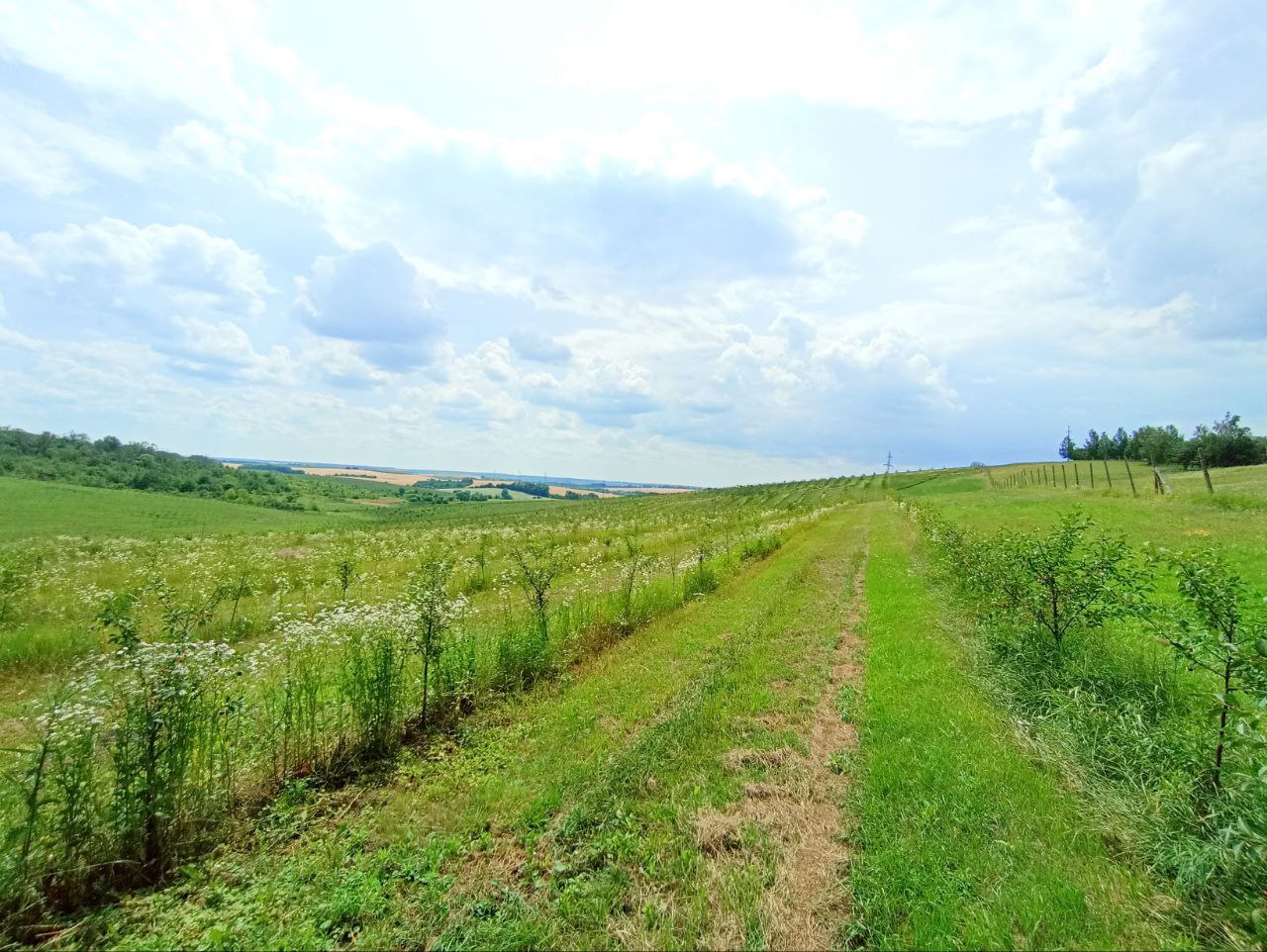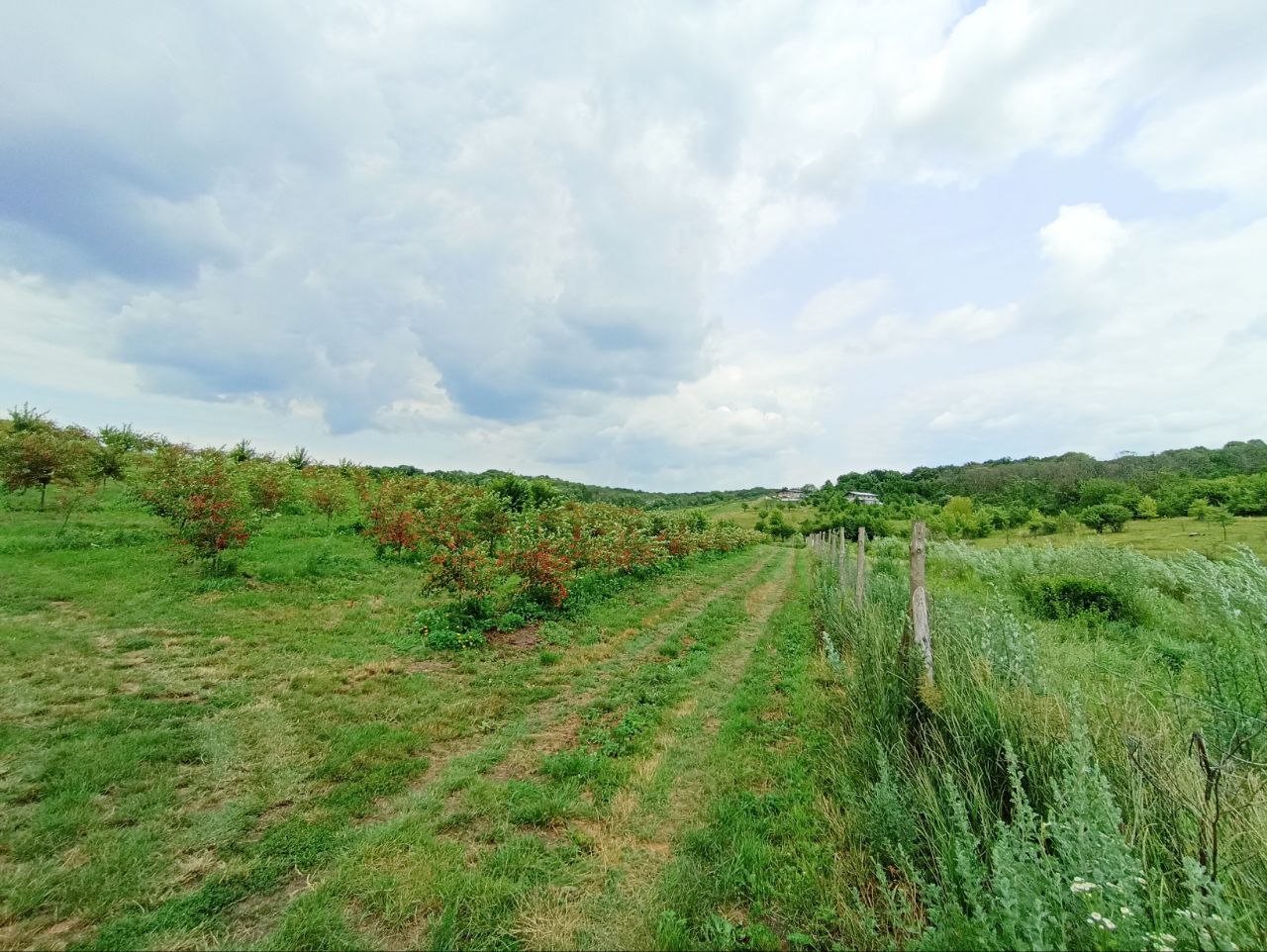 Земля доглянута та оброблена - під садами вишень, дерева від 3 до 7 років, плодоносять, територія вся огороджена (фото робились пару років тому). Поруч ліс, та викововольтна ЛЕП.