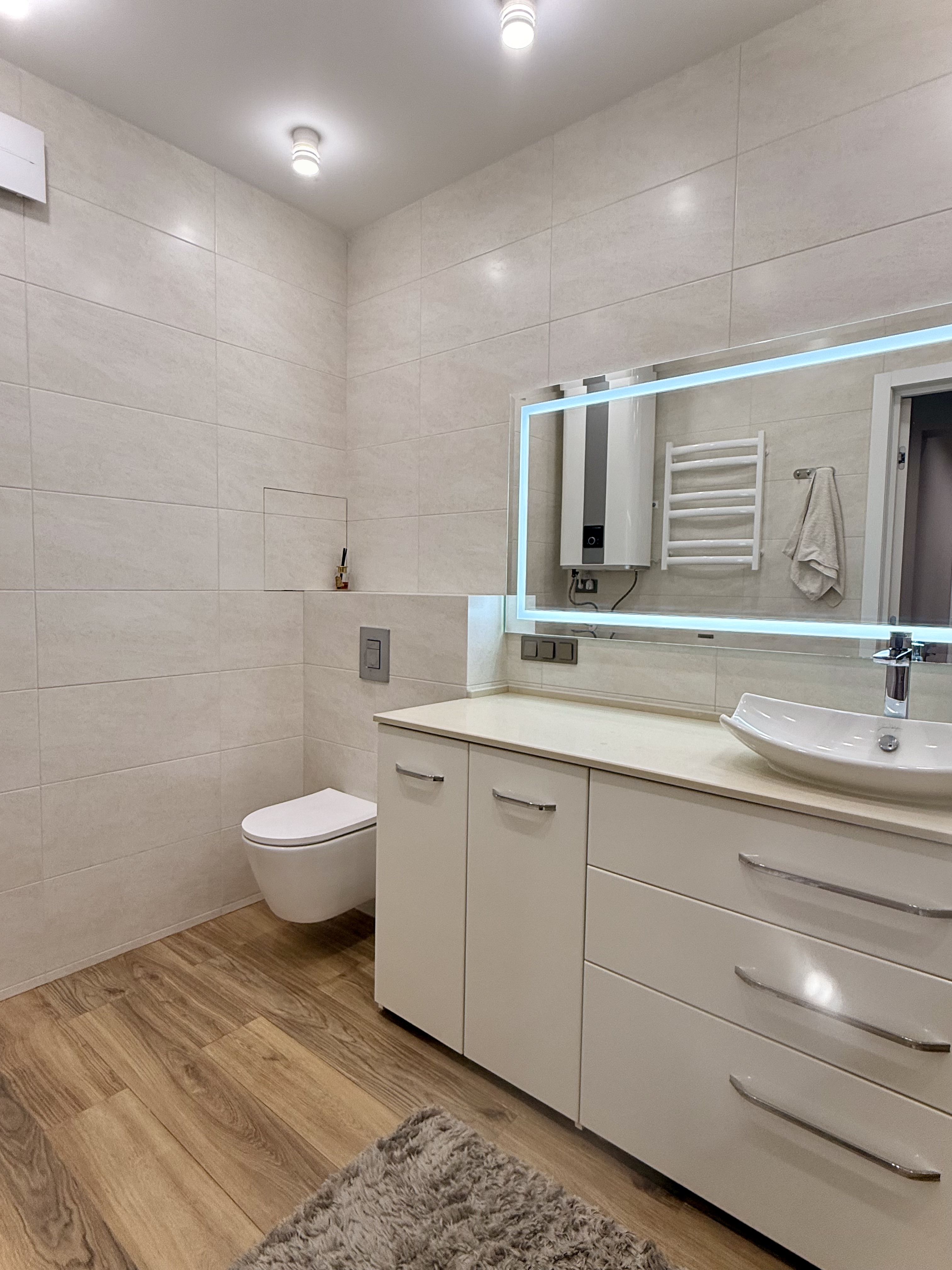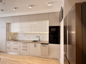 • Оснащення: Квартира повністю укомплектована всіма необхідними меблями та технікою. Встановлено теплу підлогу.