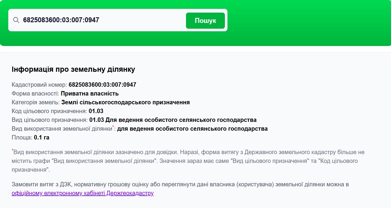 Кадастровий номер: 6825083600:03:007:0947
