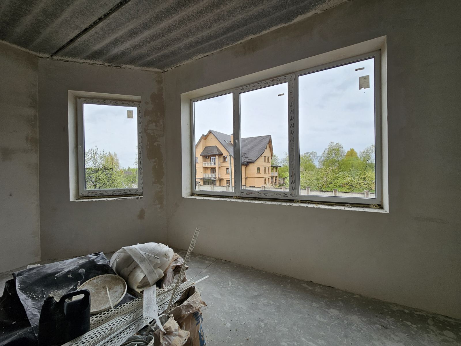 Будинок побудований з піноблоку, встановлені якісні 3-камерні металопластикові вікна з наповнювачем. Стан після будівельників, проте в квартирі вже додатково виконане утеплення підлоги пінополістиролом та якісно оштукатурені стіни.