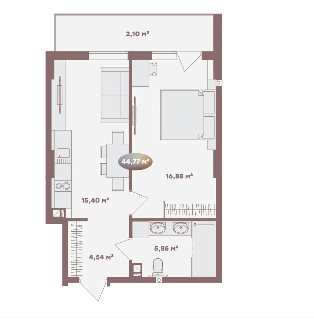 Загальна площа: 45 кв.м