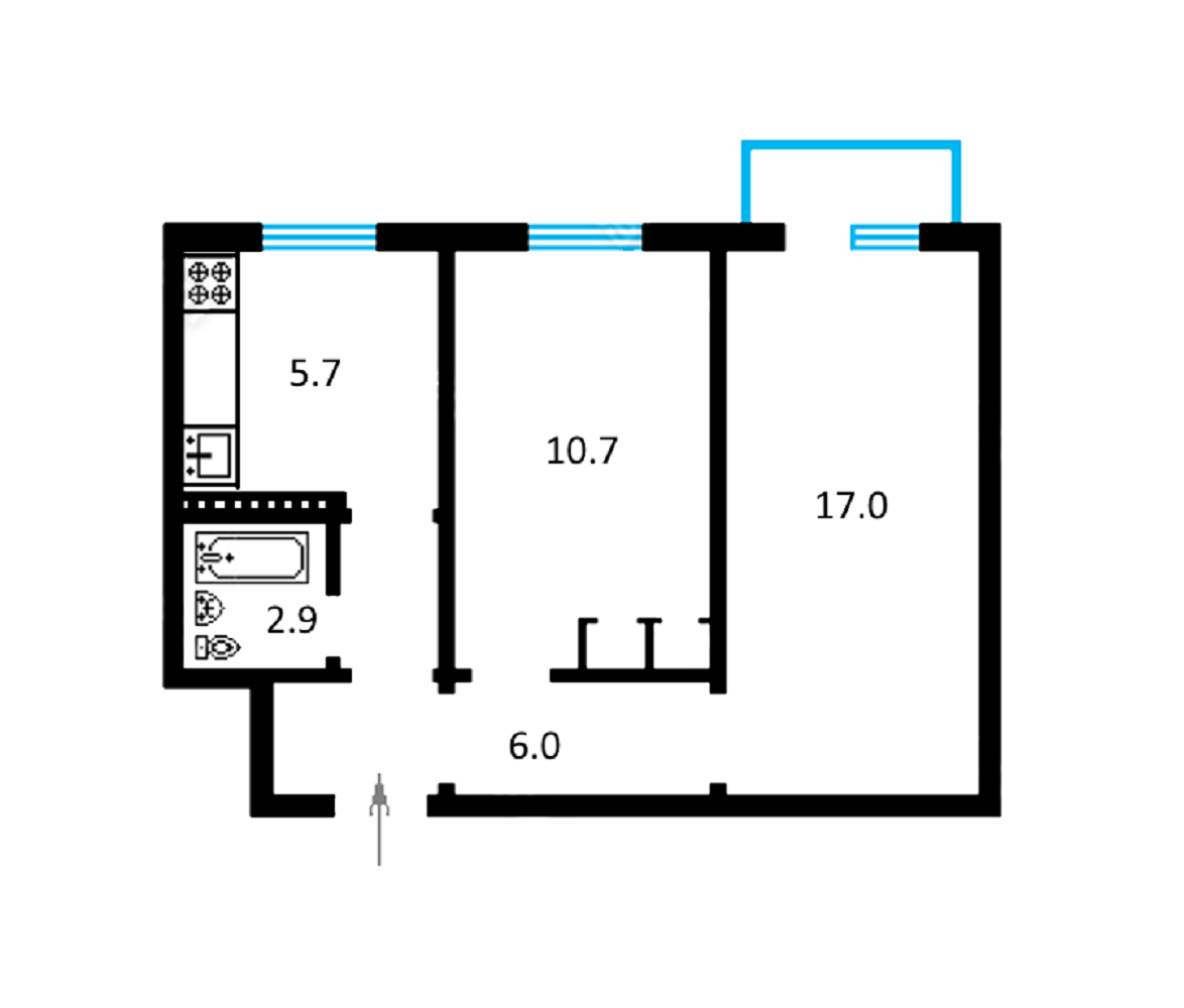 Площа кухні: 7 кв.м
