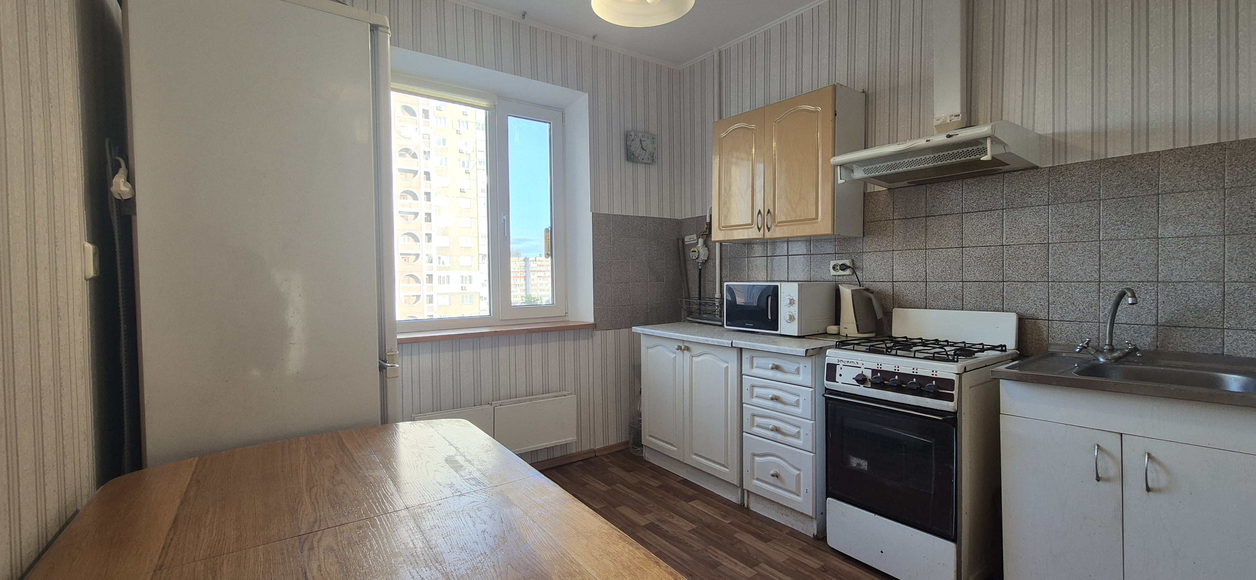 Планування : 2 кімнати роздільні, кухня, роздільний с/в з ванною, балкон. Спальня: диван розкладний, крісло, стіл робочий, 3 шафи, комод, журнальний стіл, кондиціонер, ТВ-плазма. Дитяча/кабінет: диван розкладний, крісло, 2 шафи, комод, стіл робочий (розкладний) Кухня: вбудований гарнітур, обідній стіл, газова плита, витяжка, холодильник, мікрохвильова піч, ел.чайник, мийка. Санвузол: ванна, умивальник з дзеркалом, пральна машина та бойлер. Коридор: шафа, комод з дзеркалом. Лоджия на 2 кімнати засклена. Покриття підлоги – паркет у кімнатах та коридорі, плитка в санвузлі та кухні. Додатково: заведений інтернет, роутер Wi-Fi, домофон, лічильники на газ, воду та електрику. Зроблена хімчистка м’яких меблів та килимів. Тамбур на 2 квартири. Квартира дуже тепла. При відключенні світла опалення працює. Зроблений свіжий ремонт в під’їзді та у прибудинковій території. Відеонагляд. Будинок Метробуда охайний і доглянутий. В будинку нова сучасна бойлерна. Велика дитяча та спортивна площадка у дворі. Поруч з будинком: школа №302, дитячий садок 250, великі супермаркети, аптека, кафе, ресторан, фітнес клуб АтлетіКо. До метро Харківська 15хв.пішки.