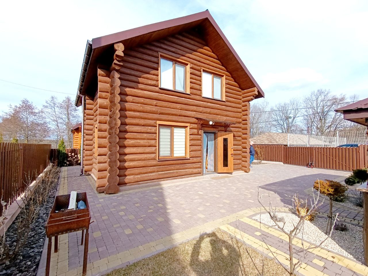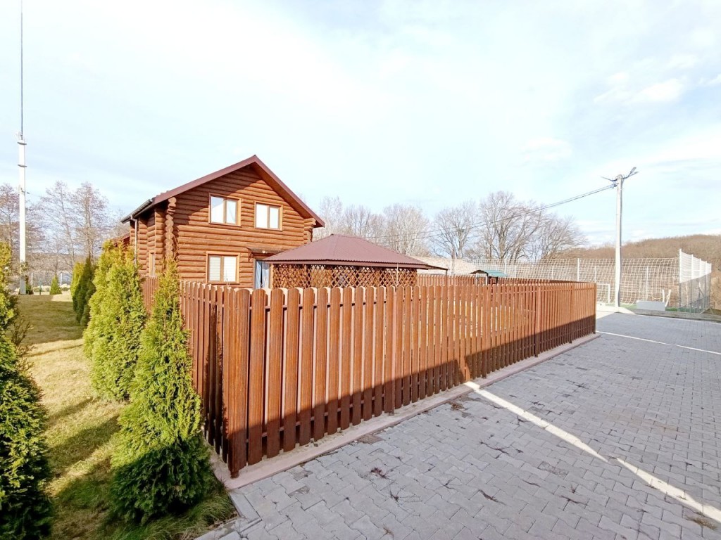 Продам двоповерховий будинок зі Зрубу (ЕКО БУДИНОК) 83,8 м.кв. збудований в 2023 році. Місце розташування с. Головчинці вул. Шевченка на першій лінії річки Південний Буг, біля готельно-ресторанного комплексу «РАЙДУГА», жіночого монастиря і джерела св. Онуфрія. Ділянка 7.7 сот. Територія закритого типу, на території тільки 2-а власника, власна охорона цілодобова, відео нагляд і є можливість винаймати садівника і прибиральника.
