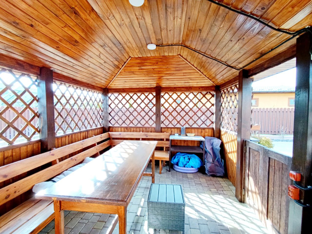 Будинок двоповерховий 83.8/53.5/15.2 м.кв.. Стеля h=2.6 м.. Покрівля – металочерепиця. Вхідні двері броньовані, міжкімнатні – дерев’яні, вікна – металопластик (ролети чи жалюзі на кожне вікно). В кожній кімнаті є кондиціонер. Вода – свердловина, водовідведення – септик. Електрика 3-и фази.