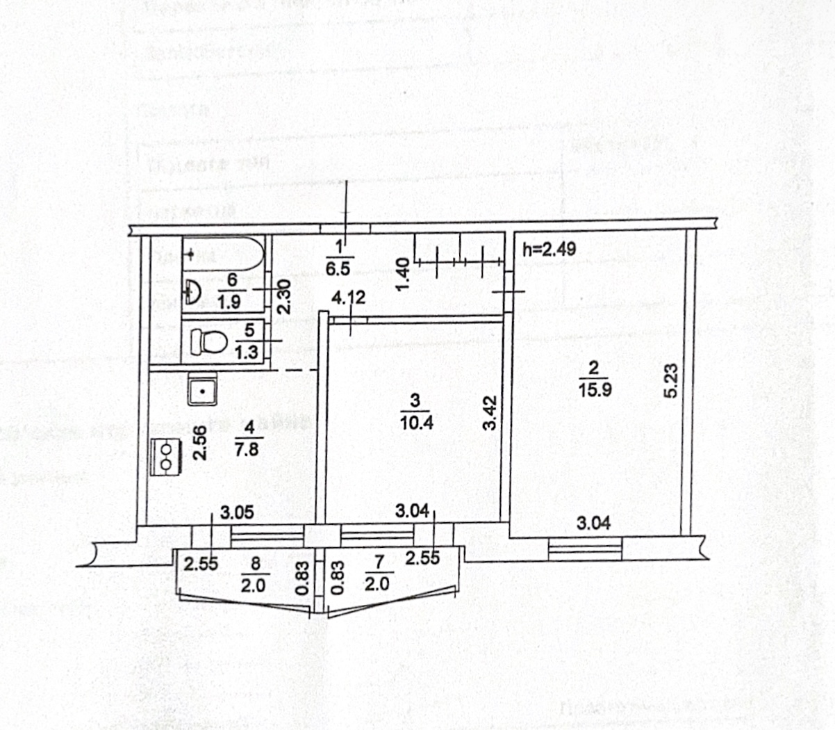 Загальна площа 47.49 кв.м., житлова 16.22 кв.м.,…