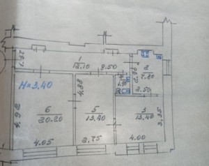 3 кімн., площа 60/43/6, поверх 4/5