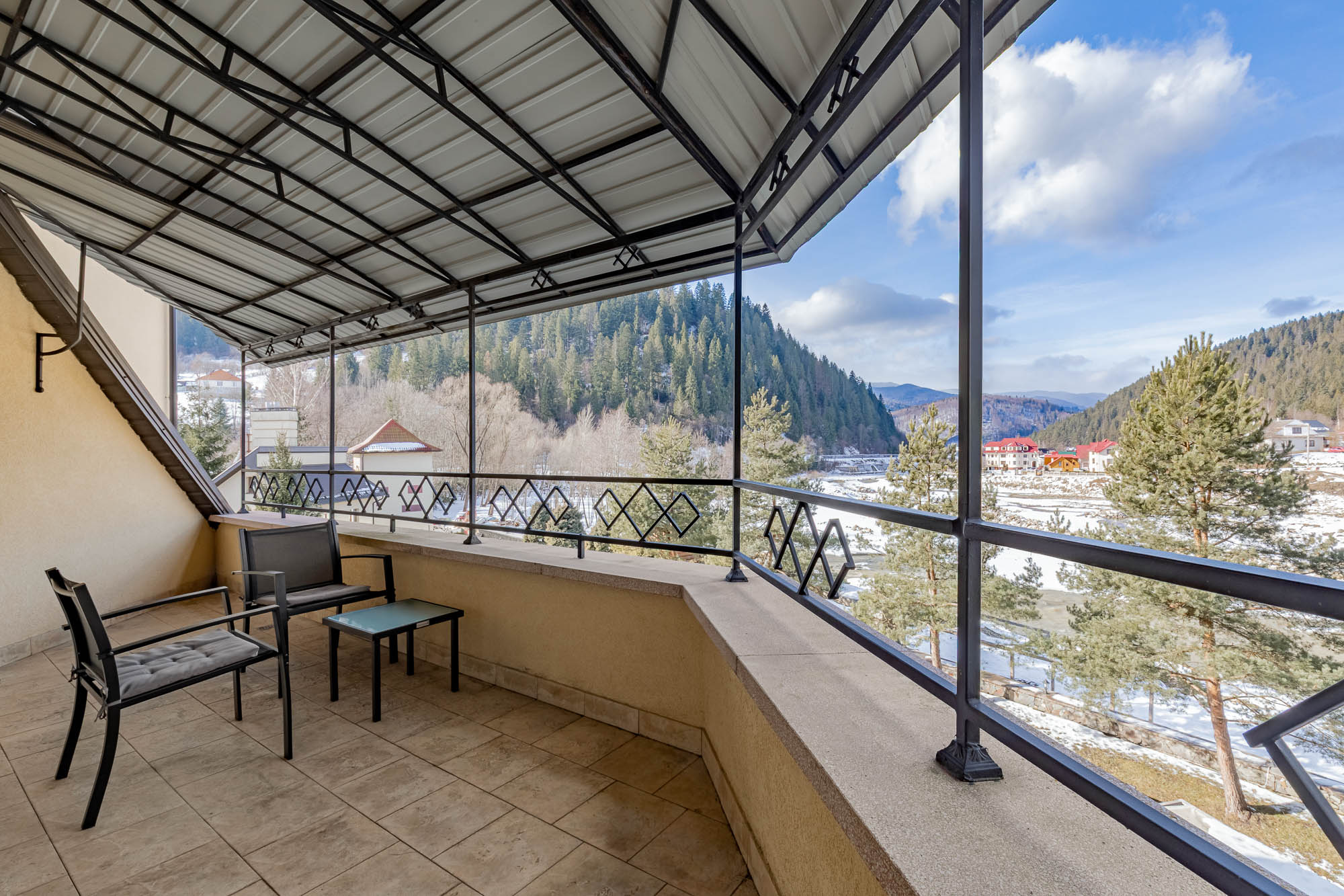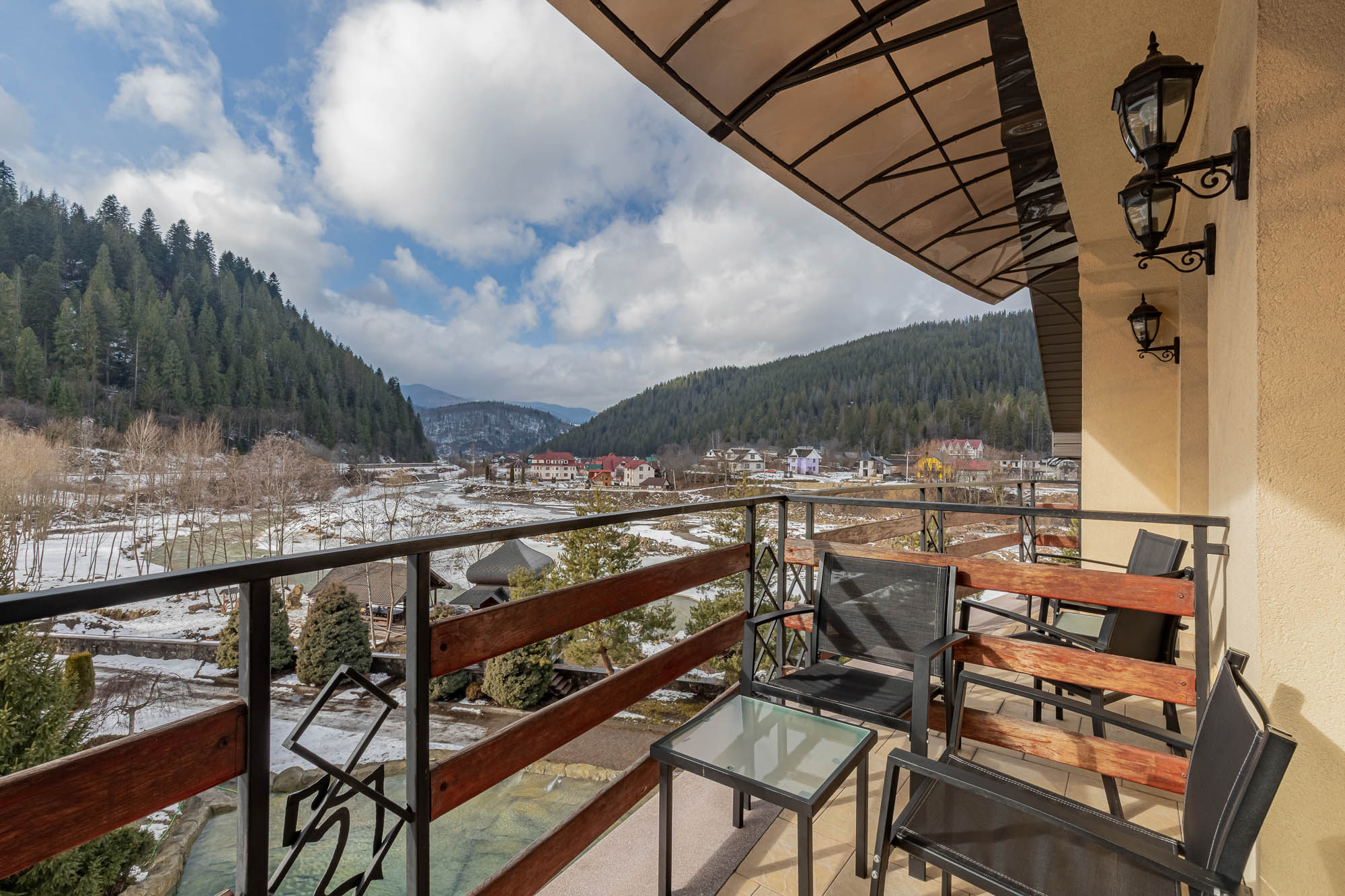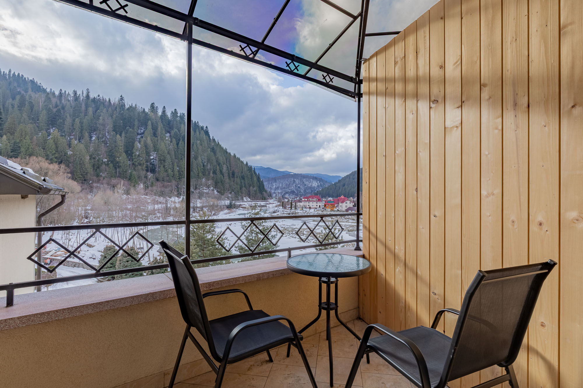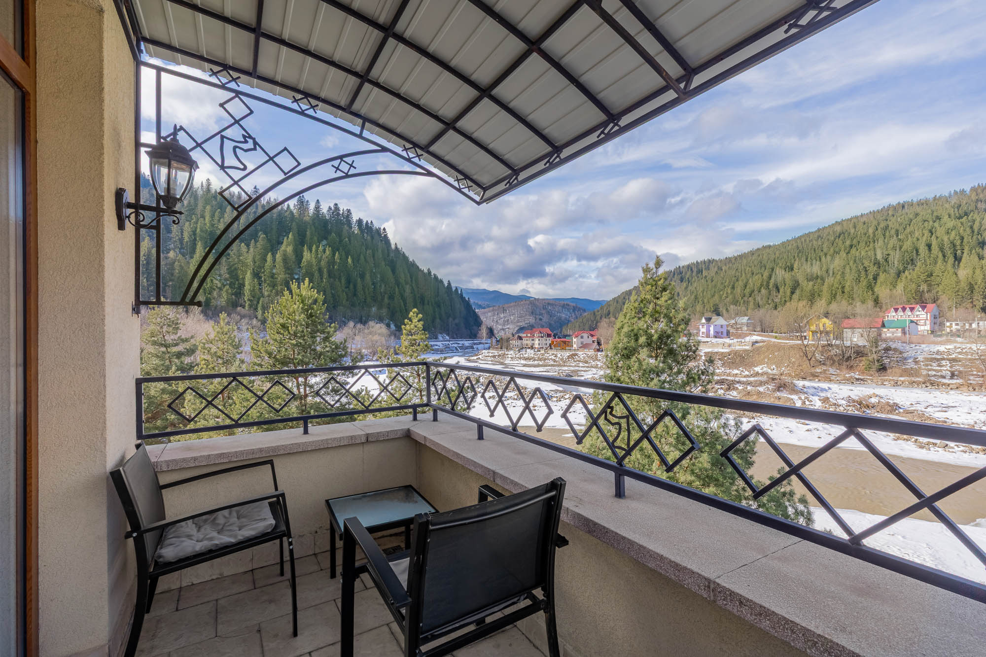 Знаходиться на мальовничому березі річки Прут, зручний виїзд до Буковелю та центру Яремче.