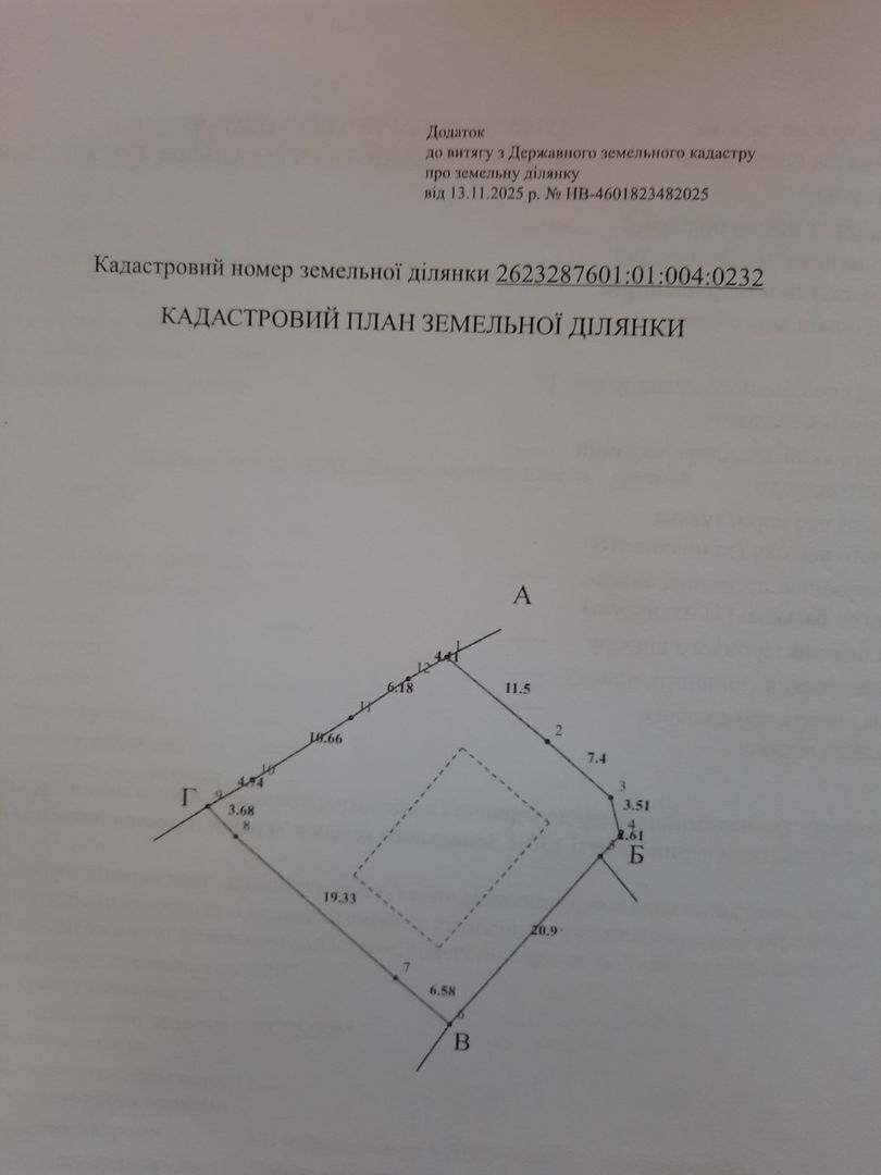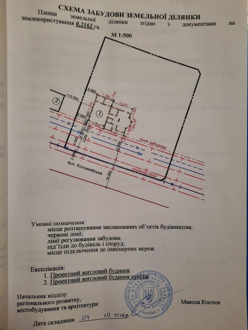 Загальна площа - 0,2162 га, для будівництва та обслуговування житлового будинку.