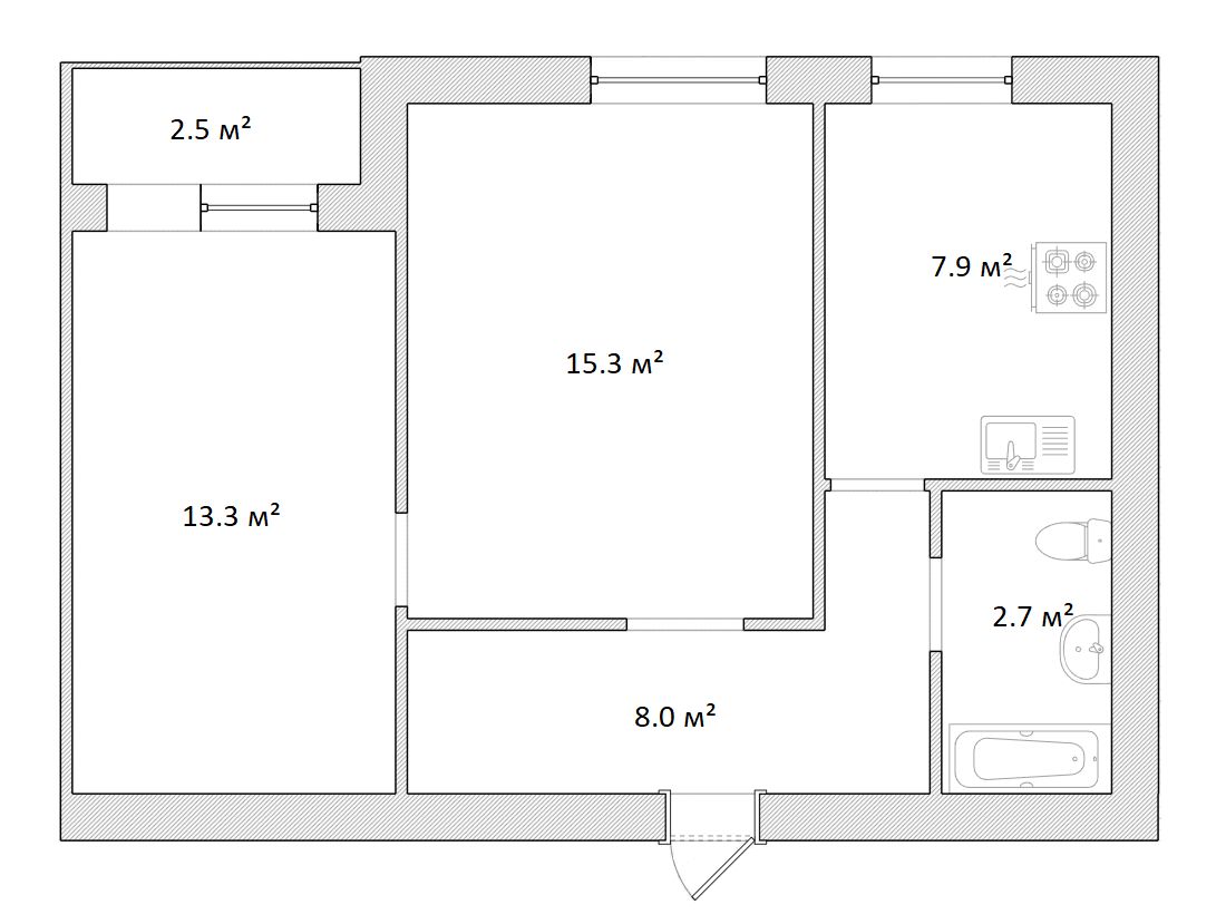- площа кухні - 8 м2