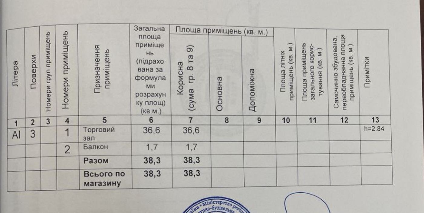 Загальна площа: 38.3 кв.м