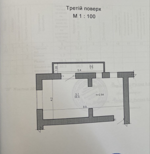 1 кімн., площа 36, поверх 2/2