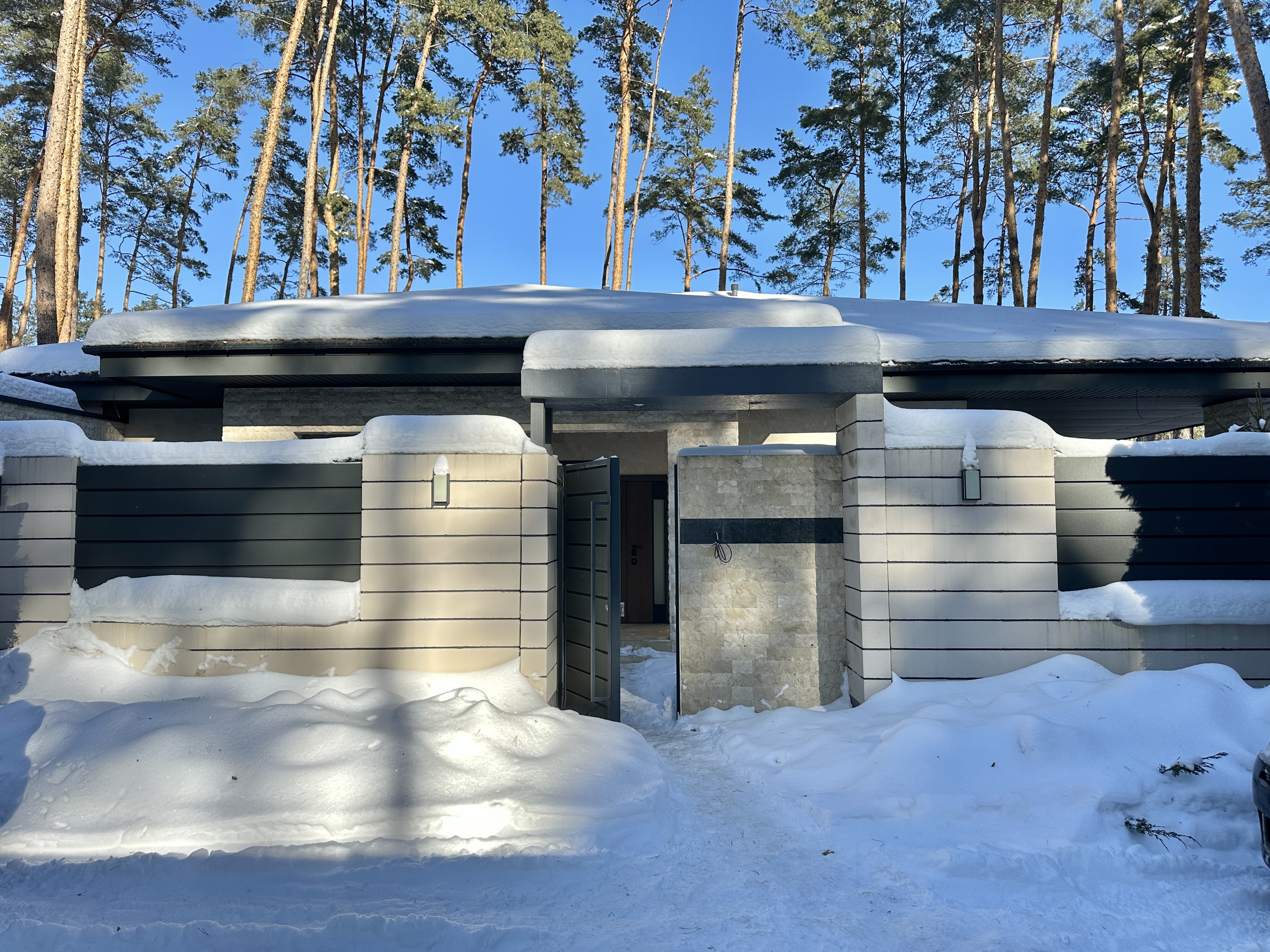 Стильний одноповерховий будинок в оточенні соснового масиву. Тихе, престижне місце з відчуттям заміського комфорту. Асфальтована вулиця.