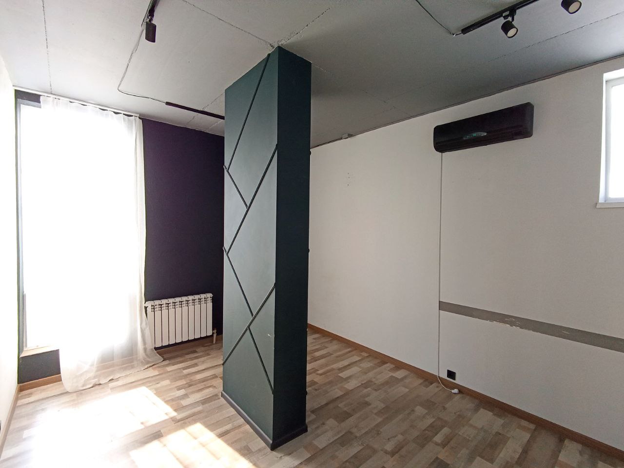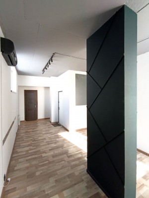 Приміщення складається з двох кабінетів і двох входів (один без вікна) на 4-м поверсі в 4-х поверховий будівлі. 2 вікна, утеплення з зовні, доступ 24/7, висота стелі h=3.0 м, світло, вода і каналізація на поверсі, відео нагляд в будівлі, опалення – централізоване і кондиціонер, на все лічильники. В будівлі працюючий ліфт. Ремонт: підлога – плитка-ламінат, стіни – пофарбовані, стеля – пофарбована, освітлення – рейки під плафони.