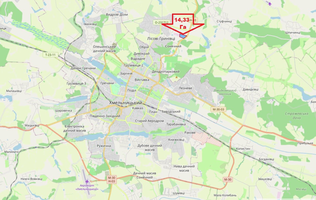 Продаж земельної ділянки 14.3288 га в передмісті Хмельницького, Лісові Гринівці.