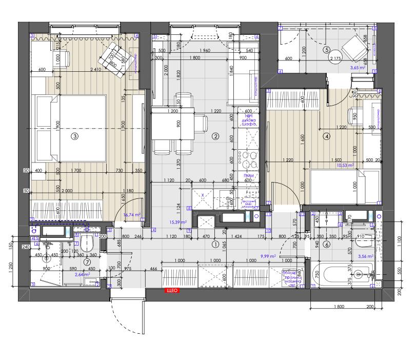• квартира – 65 м2, 7/16 поверх ;