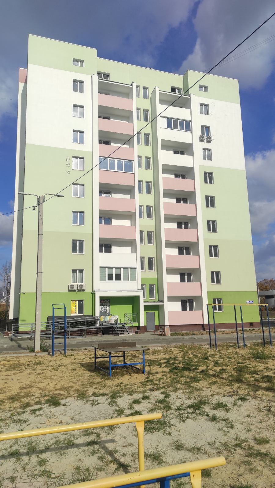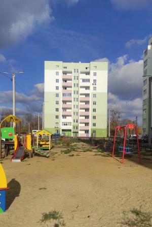 З вікон відкривається приємний вид у двір, де облаштовано дитячий майданчик та є місця для паркування авто
