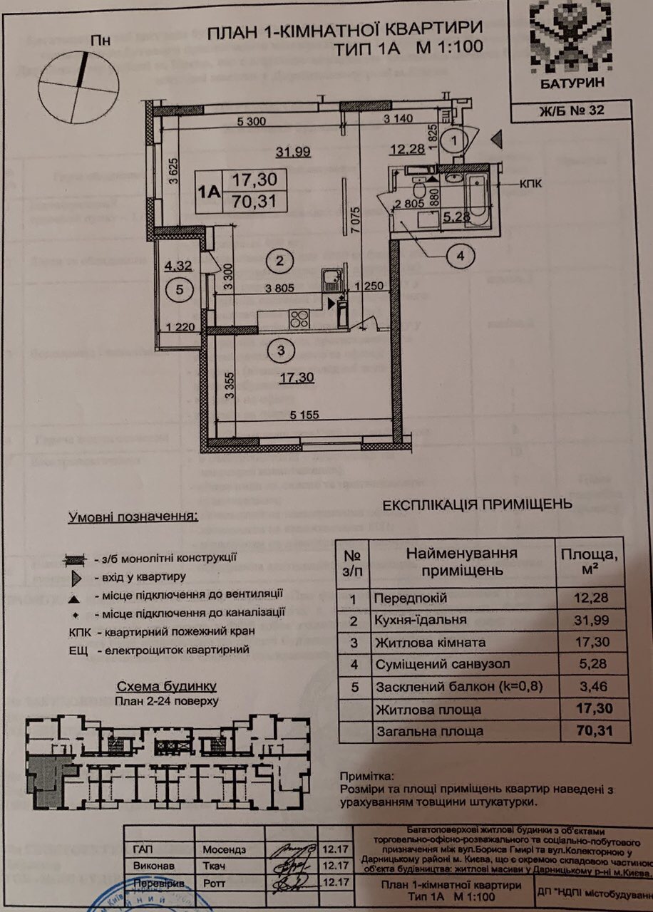Без комиссии! Продажа 1(2) квартиру в Патриотике, дом Батурин, с отличной свободной современной планировкой 70,32 м кв, кухня-студия 32 м кв, спальня 18 м кв, возможность сделать 2 спальни. Комфортный этаж - 3. Монолит/кирпич, в отличном месте, 10-12 мин от метро Осокорки или Позняки, возле озера и школы. Квартира видовая на озера со всех окон (тип 1А). Состояние после строителей, современные и качественные строительные материалы. Cдача и заселение - 2 квартал 2023г по плану нового управляющего активанми!