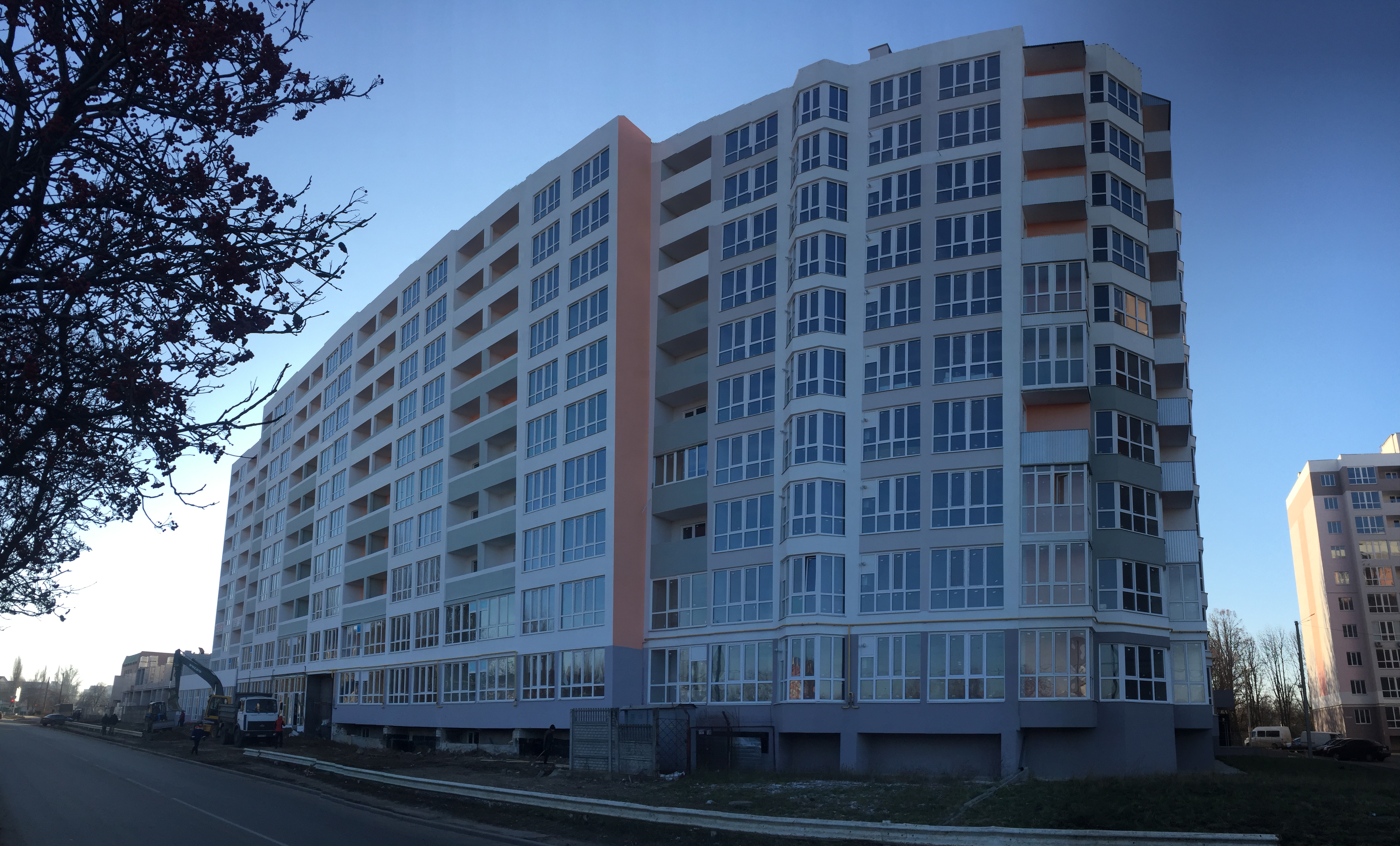 10-этажный дом с внешне утепленными стенами.