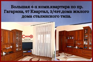 Предлагается к продаже большая 4-х комн.квартира по пр. Гагарина, 97 Квартал, 3/4эт.дома жилого дома сталинского типа.