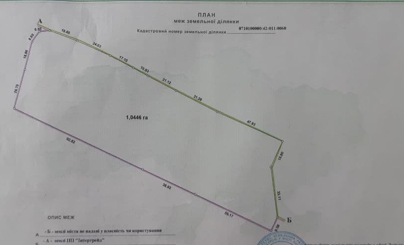 Кадастровий номер ділянки №0710100000:42:011:0060, наявні усі комунікації. На території знаходяться три виробничі приміщення.