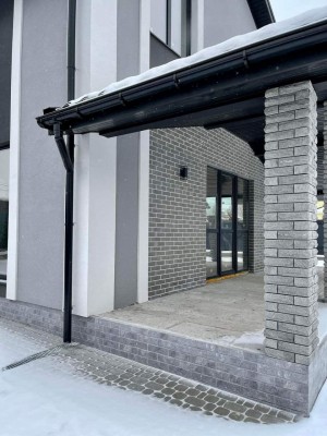 Будівництво: стіни - газоблок 300 утеплення фасаду - 100 оздоблення фасаду - декоративна штукатурка та камінь, перекриття - з/б дах - металочерепиця. Внутрішне наповнення: сходи - бетонні сход вікна - металопластикові ламіновані вхідні двері - склопакет Коммунікації: електрика - введено в будинок 3ф 16Квт вода - скважина 35м каналізація - септик тепла підлога - 1 эт, 2 эт (с/в) Планування: 1 поверх: коридор, с/в, кімната, кухня-студія с панорамними вікнами та виходом на простору терасу з видом на ліс і парк. 2 поверх: 3 кімнати, с/в Територія: паркан - стовбці з облицювальної цегли в'їздна зона - відкатні ворота