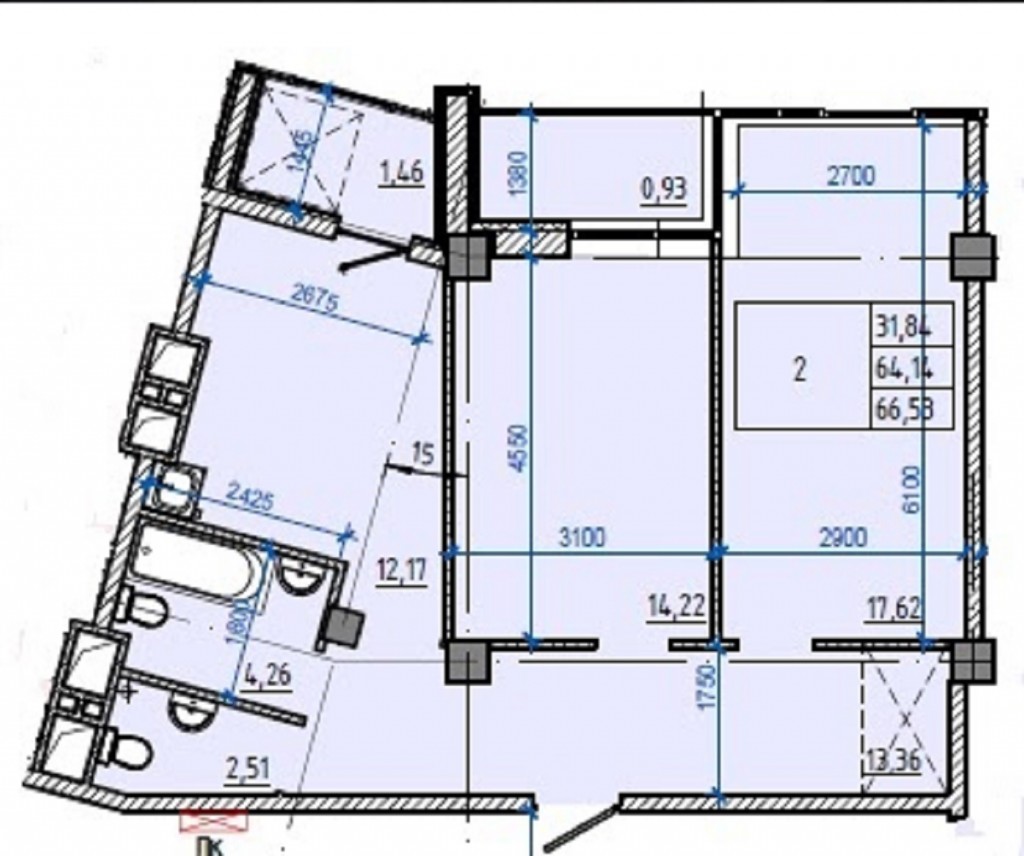 Загальна площа: 66.58 кв.м