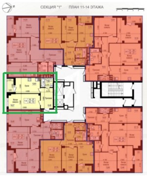 1 кімн., площа 40/10/14, поверх 4/8