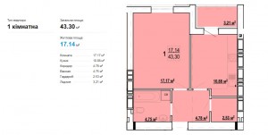 Загальна площа: 43 кв.м