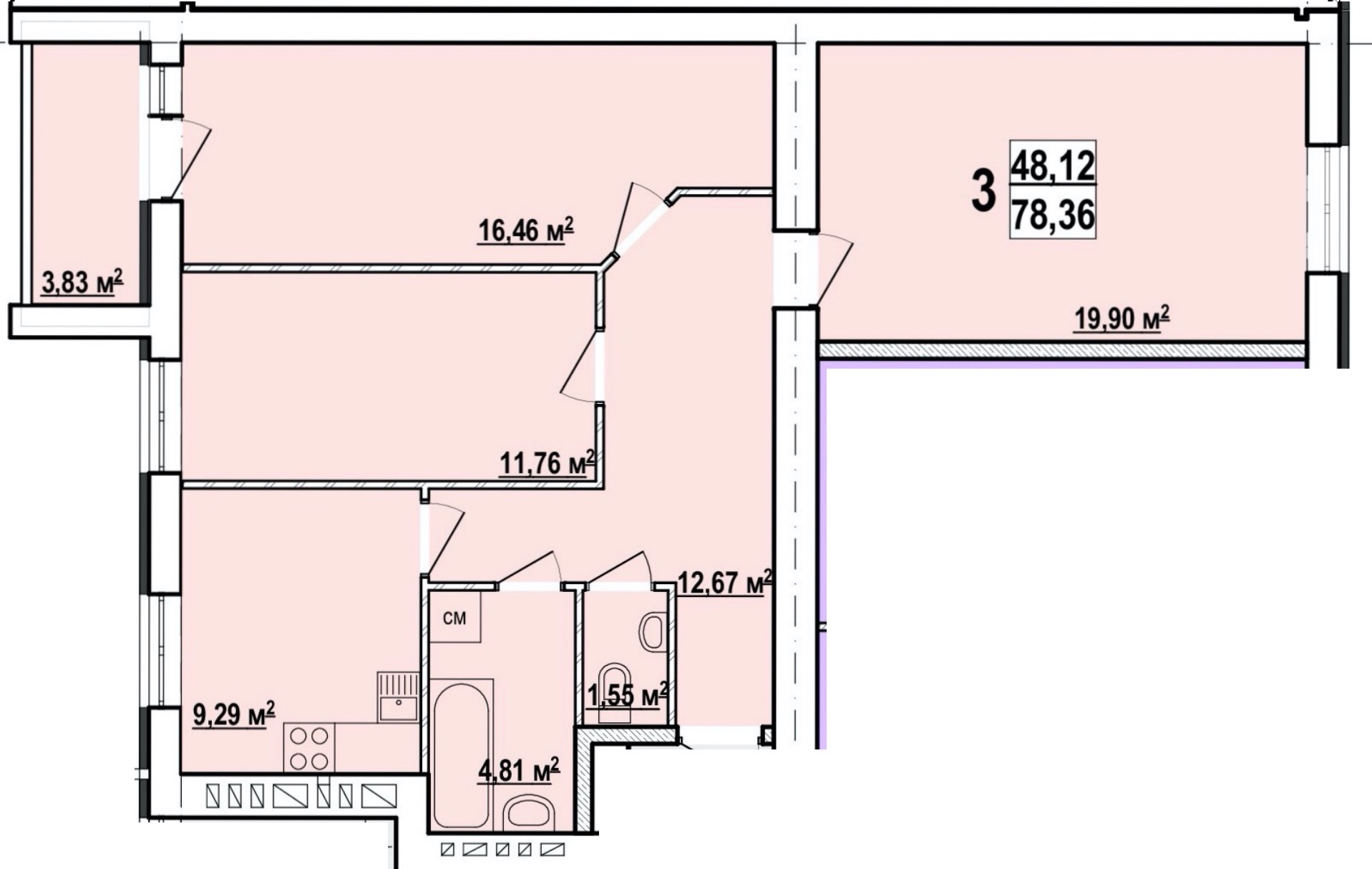 Загальна площа: 78 кв.м