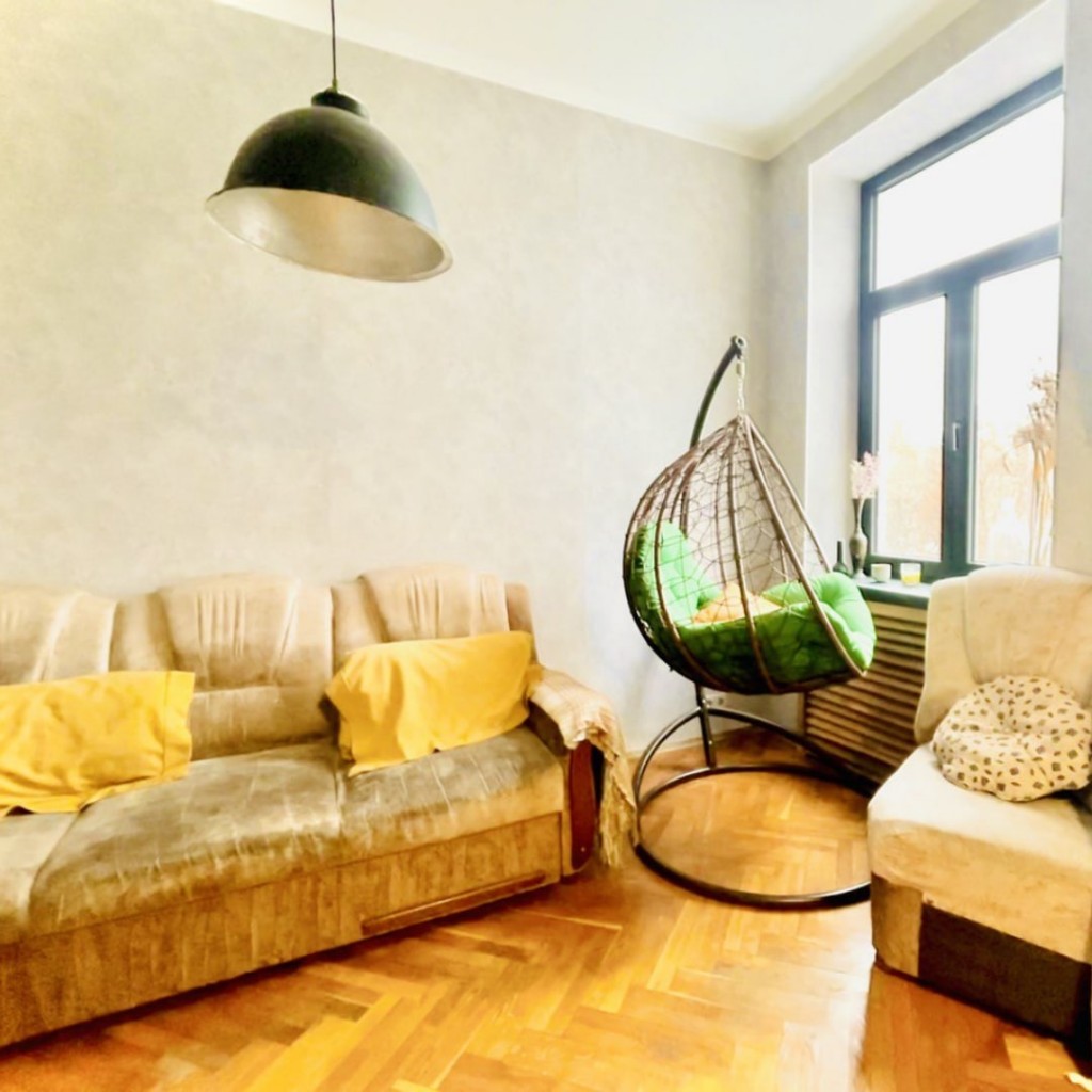 * Итак 4 комнаты, уютная кухня-столовая, лаконичный санузел, разделённые длинным коридором, паркетные полы все с «жилым» ремонтом, тут возможно сделать перепланировку, есть два балкона с прекрасными пейзажами древнего Киева.