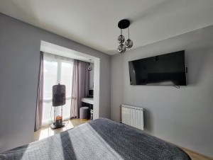 Ремонт – сучасний. Зроблений якісно, «під себе»: на стінах фарбування та штукатурка, гіпсовий декор, на підлозі – високоякісний ламінат, встановлена дорога сантехніка, дорога та зручна кухня з вбудованою технікою.
