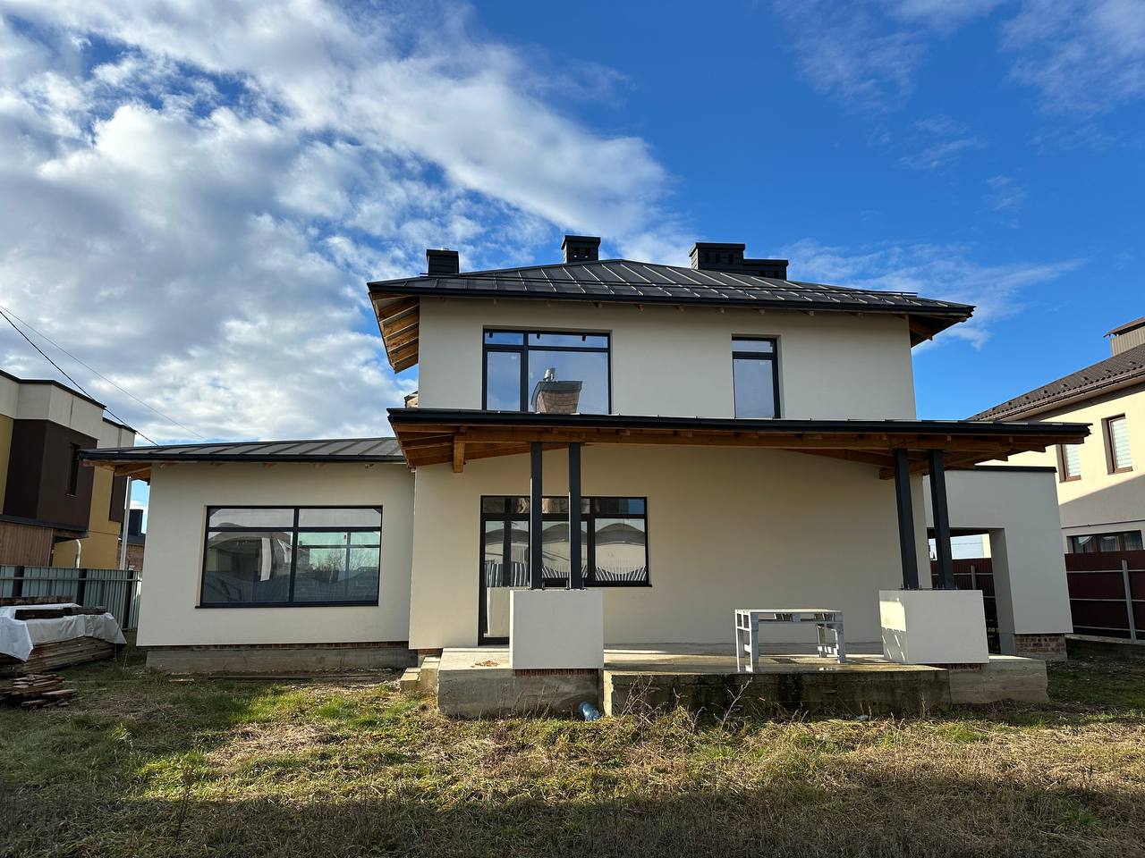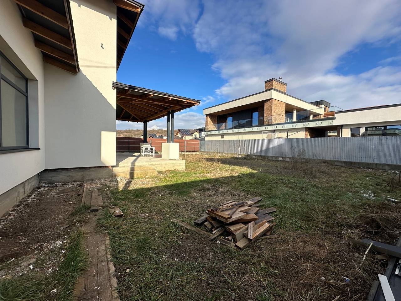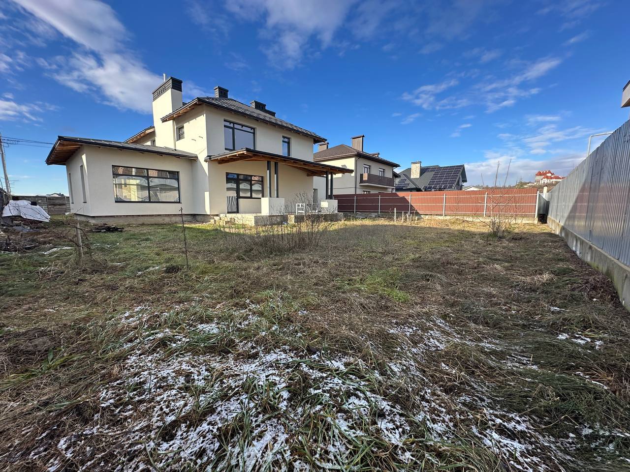 Продається сучасний будинок в одній із найкращих та обжитих локацій села Вовчинець. Добротний цегляний вистояний будинок, який побудовано за сучасним проектом. Земельна ділянка площею 8.3 сот правильної квадратної форми. На першому поверсі великий гараж площею 26 м.кв., санвузол, котельня, кухня з виходом на віддкриту терасу та простора столова з можливістю встановлення каміна. Також є можливість додатково паркувати два автомобіля під накриттям. Матеріали перекриття між першим і другим поверхом – залізобетонні плити. На другому поверсі 3 окремі кімнати та санвузол. Внутрішні стіни поштукатурені. Накритий фальцованою німецькою бляхою та утеплений з внутрішньої сторони пресованою мінватою. Будинок ззовні утеплений 15 см пінопластом та покритий кольором. Заведено 15 кВт світла. Асфальтована дорога до будинку. Вода підведена - свердловина глибиною 12 м. Газ межує з ділянкою та подані документи для підключення. Затишна локація, поруч річка Бистриця. До Івано-Франківська 5 хв на автомобілі.