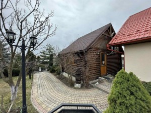 Територія вся огороджена цегляним парканом, ландшафтний дизайн подвір'я, плодовий сад з фруктовими деревами та кущами, хороший виноградник на перголі, зариблений ставок , бруківка.