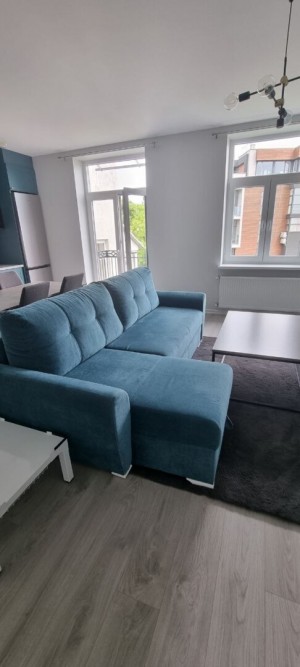 Планування: ізольована спальня, простора кухня-вітальня з виходом на відкритий балкон, суміжний з ванною санвузол. Квартира укомплектована усім необхідним для комфортного проживання: посудомийна машина Eleсtrolux, холодильник Samsung, мікрохвильова піч, пральна та сушильна машина Whirlpool, витяжка Franke. Повноцінна кухня з електричною плитою та духовою шафою Cylinda. У вітальні зручний диван, що розкладається та телевізор LG. У спальні велике двоспальне ліжко з ортопедичним матрацом, місткою вмонтованою шафою. Індивідуальне опалення, двофункційний котел. Підігрів підлоги у кухні, вітальні та ванній. Є відкритий балкончик з виглядом на озеленене подвір'я та будівлі Львова. Перше заселення. Поруч парк Знесіння, Винниківський ринок, зупинка громадського транспорту. Є відеоогляд помешкання.