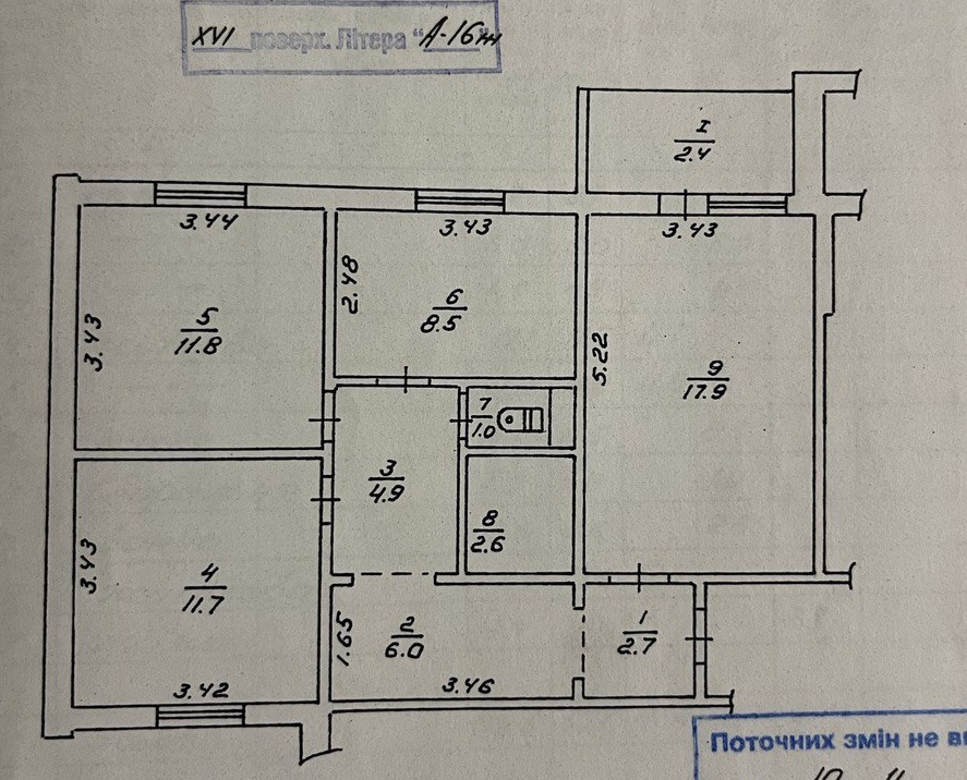 4 кімн., площа 79/54/7, поверх 9/9