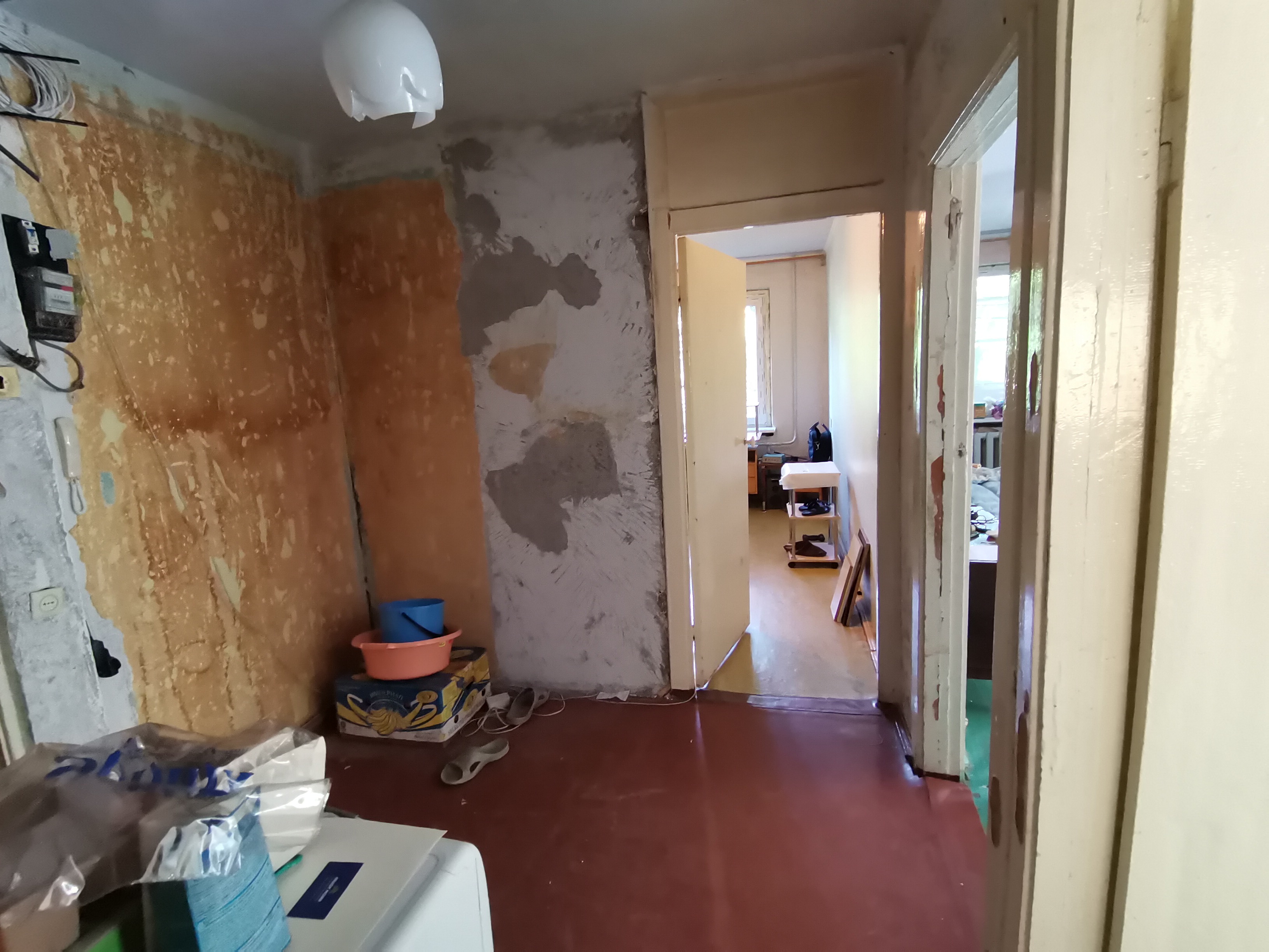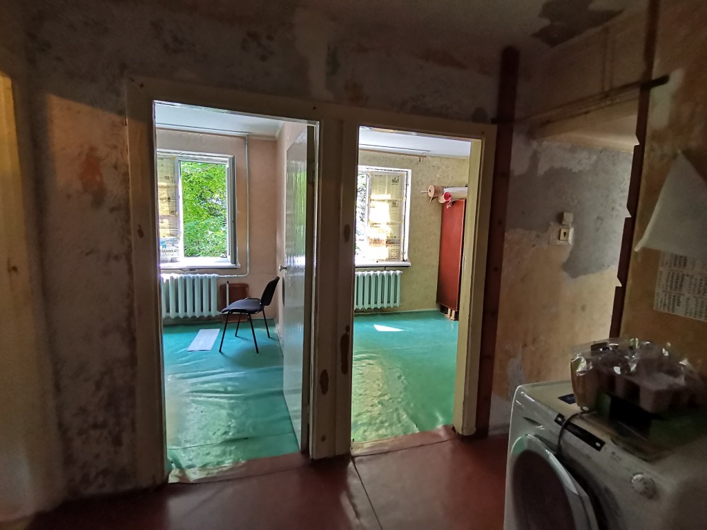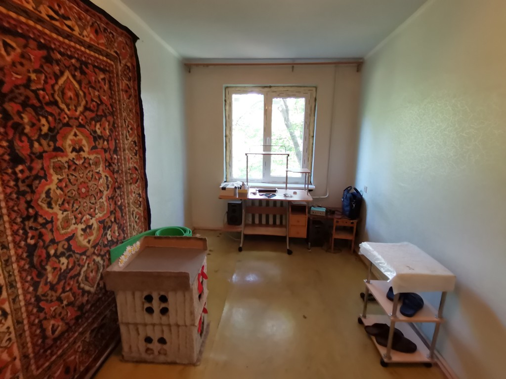 Квартира расположена на 3м этаже в 5и этажном, панельном доме. Комнаты все раздельные. Состояние отличное-под ремонт. Можно сделать шикарную 2к. квартиру с кухней студией. Прихожая большая, квадратной формы. Стены ровные. Квартира очень тёплая, вчера поставили метало пластиковые окна. Батареи чугунные, хорошо держат тепло. Ремонт можно сделать по своему усмотрению.