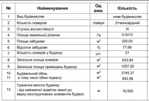 на реконструкцію під апарт-готель на 21 номер загальною площею 1060 м2 (в тому числі підвальних приміщень 200 м2).