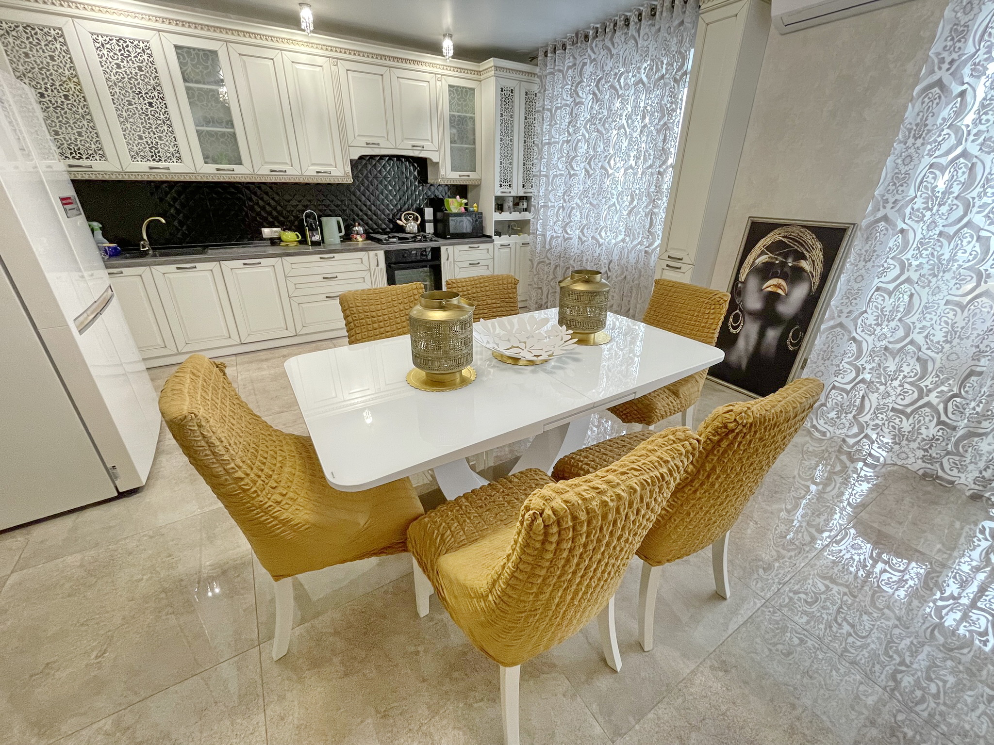 Вона має 3 кімнати, студійний тип планування і загальну площу 128 квадратних метрів. Житлова площа становить 72 квадратних метри, а площа кухні - 30 квадратних метрів.